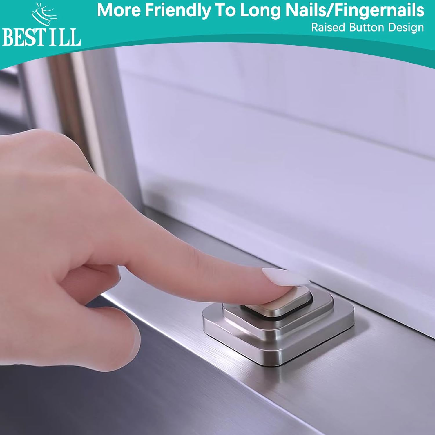 BESTILL Garbage Disposal Air Switch Kit, Square Raised Push Button Ideal for Long Nails, Cordless Sink Top Brass Switch for Food Waste Disposer, Brushed Nickel, Compatible with all Garbage Disposals