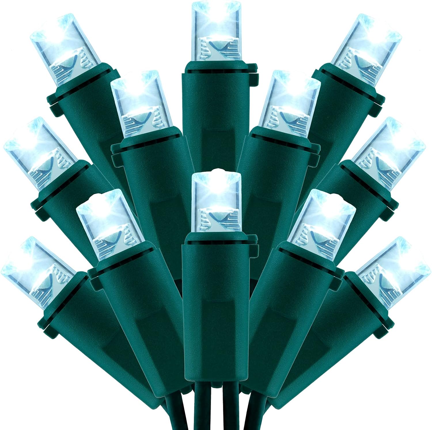 - Bright Cool White ☀ Featuring 200 cool white 5mm LED bulbs, , with 4-inch spacing, bright and pristine white color that doesn't glow bluish, creates a cozy and festive ambiance. The wide angle bulbs feature multi-angle light source technology, providing a wide and even distribution of light. The independent light heads allow the light to diverge at multiple angles, ensuring that no corner of your Christmas tree or garden goes unnoticed.