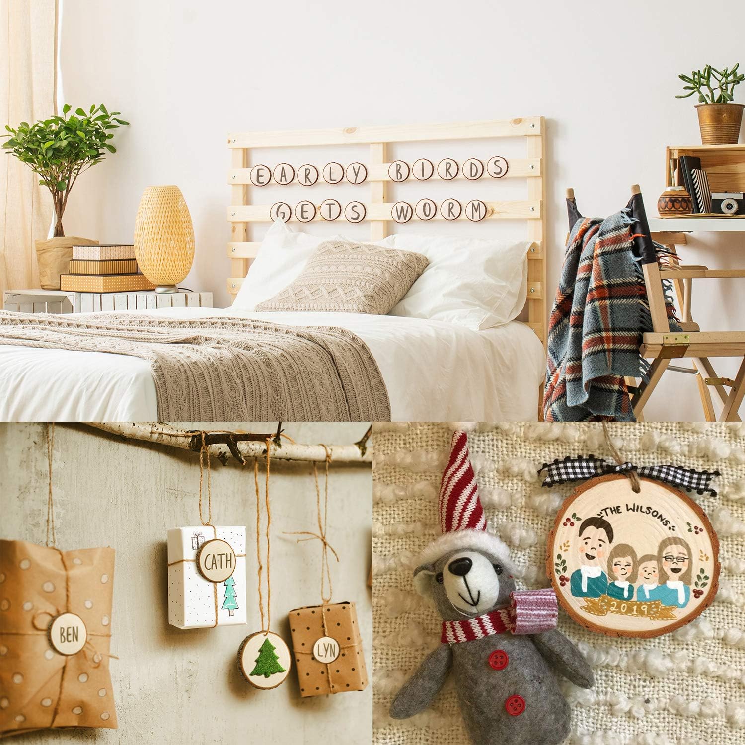 - Easy to use: You can hang hang the wood slices easily with a predilled small hole and attached jute twine and red-white cotton twine, 33 feet for each. Also, adopt upgraded drying technology and adopt scientific control of moisture ratio in wood slices, to prevent the wood from drying or cracking