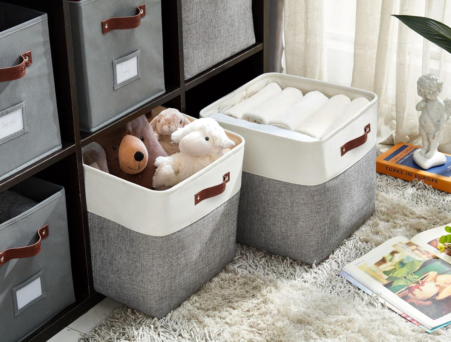 DECOMOMO Storage Cubes, 12x12 Storage Bins, Baskets for Shelves (Grey & White, Cube 12" - 4 Pack)