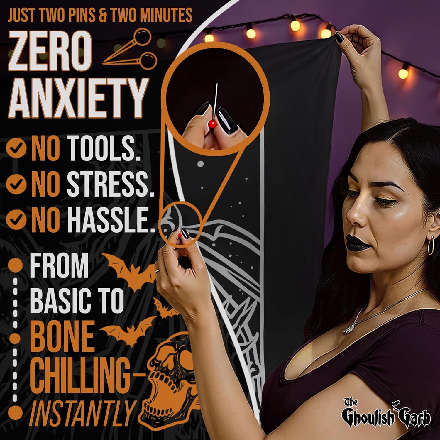The Lovers Tarot Card Tapestry (Black & White) - Grim Reaper - Gothic Couple Halloween Home Decor Wall Hanging (59" x 51")