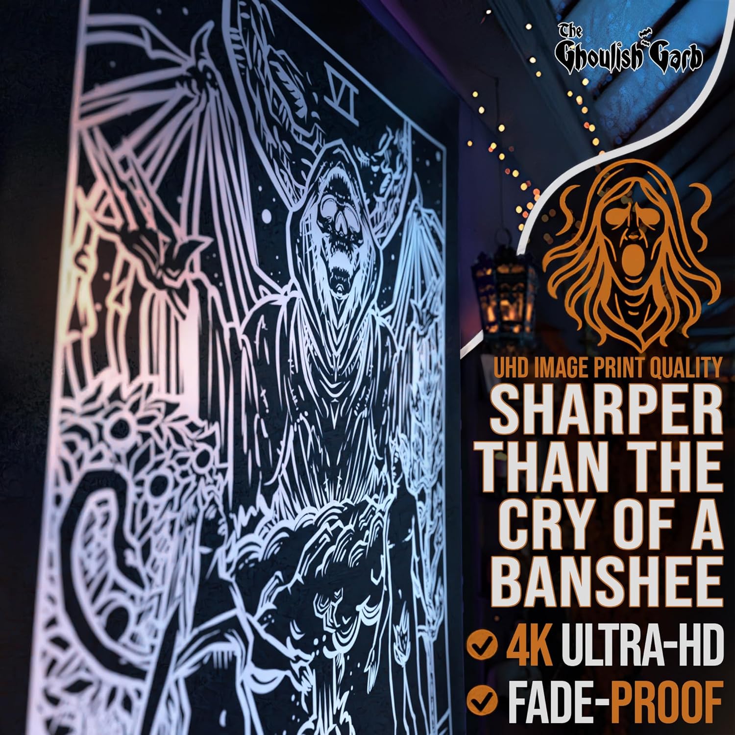 - ๐ Features a Monochromatic, Ghoulish Rendition of the Major Arcana Tarot Card, The Lovers