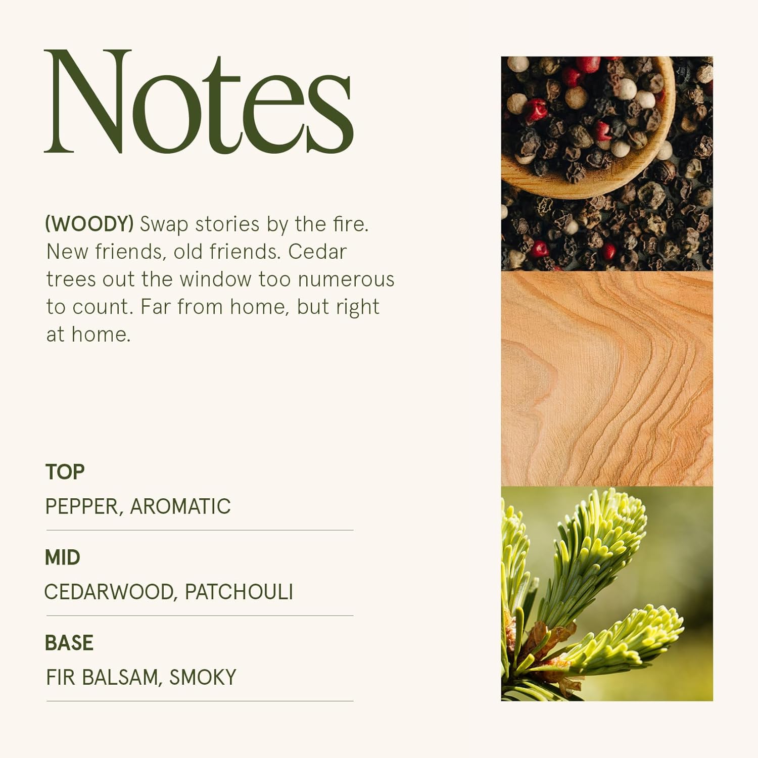- STARLIT GOLDEN FIR - Crisp mountain air laced with refreshing cedarwood and earthy patchouli, then deepens into a forest of fir balsam, kissed by a wisp of campfire smoke. A reminiscent of a holiday family gathering under the evergreen conifer.
