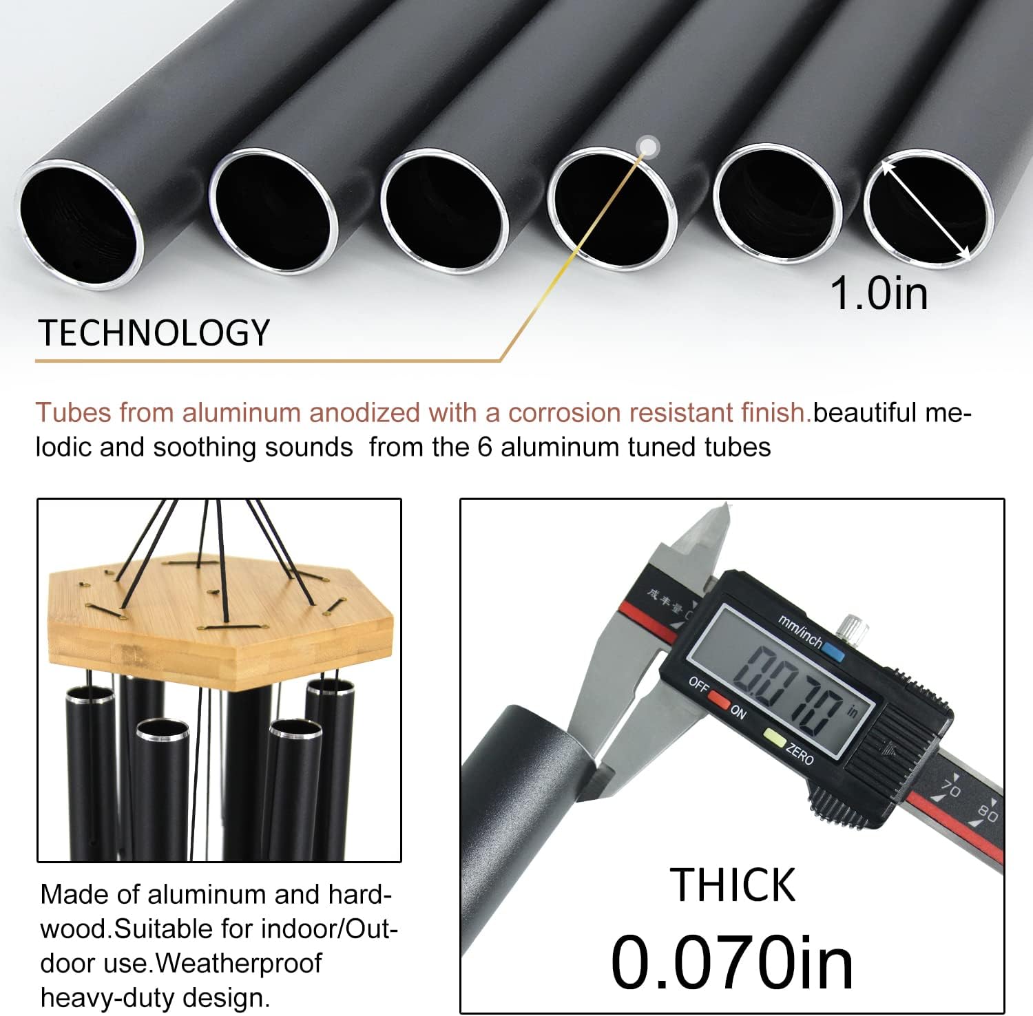- Unique Wind Chimes Design-36-inch height from hanging hook to bottom wind catcher, the top beech wood offers a unique look. Secured with black nylon string, they hang from a strong S hook, EASILY TO HANG. 6 aluminum powder-coated tubes are hand-tuned; you can enjoy peaceful melodies that play as a whisper in the wind.