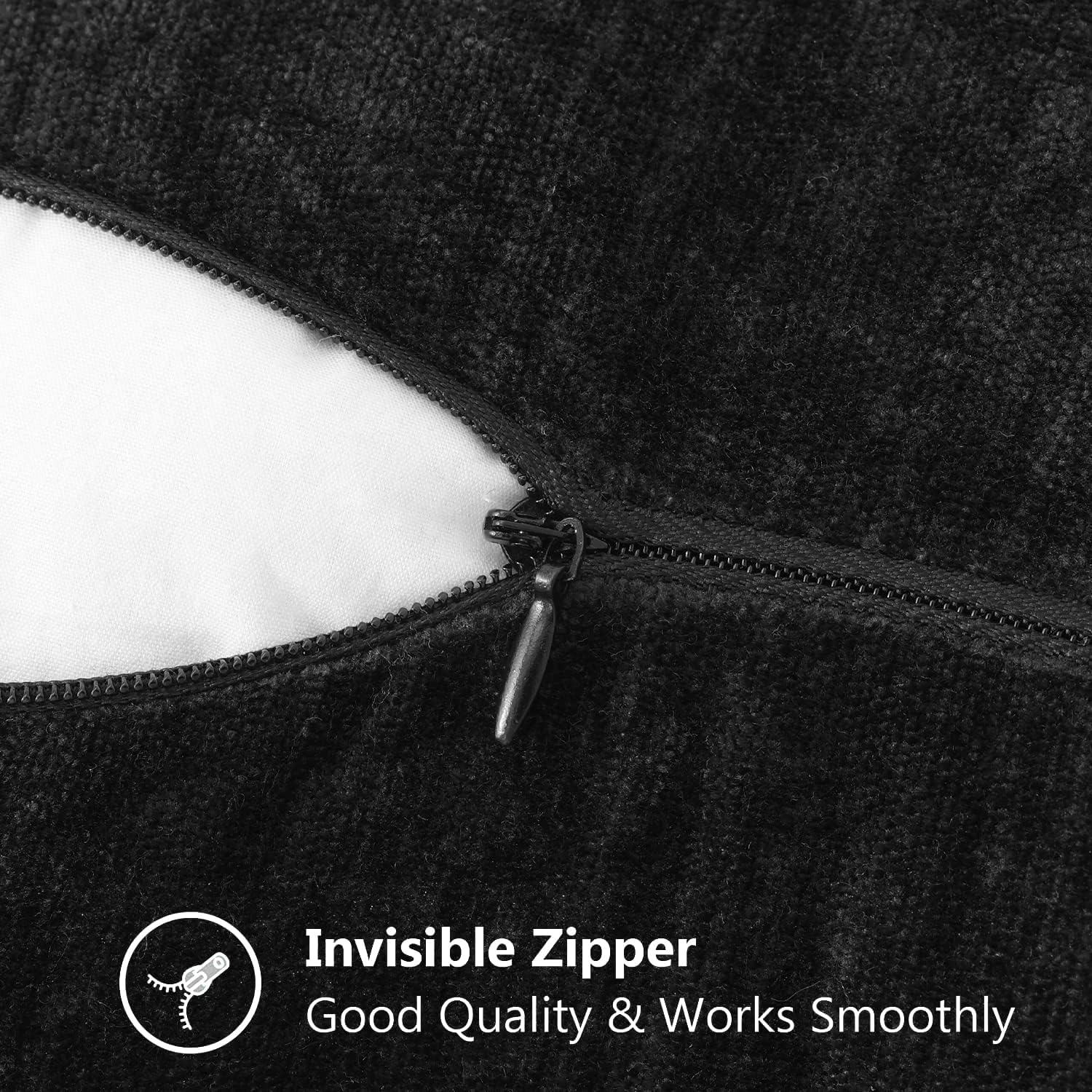 decorUhome Chenille Soft Throw Pillow Covers 20x20 Set of 2, Farmhouse Velvet Neutral Decorative Euro Pillow Covers with Stitched Edge for Couch Sofa Bed Home Decor, Black