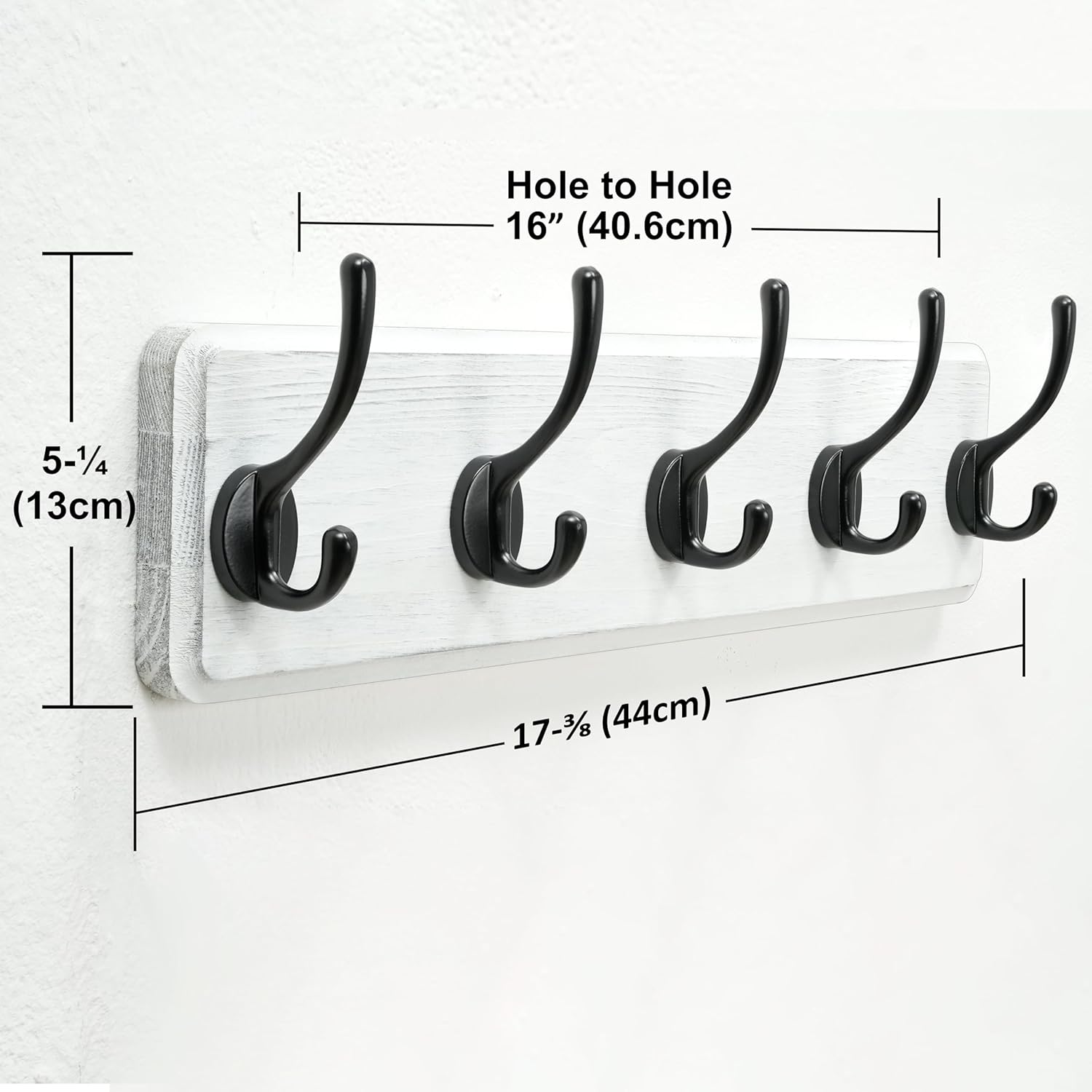 - Size: 17-3/8 x 5-1/4 x 2-3/4 IN; including 2 x wooden hook rail wall mount, upgraded hardware, user manual; color: white and black.