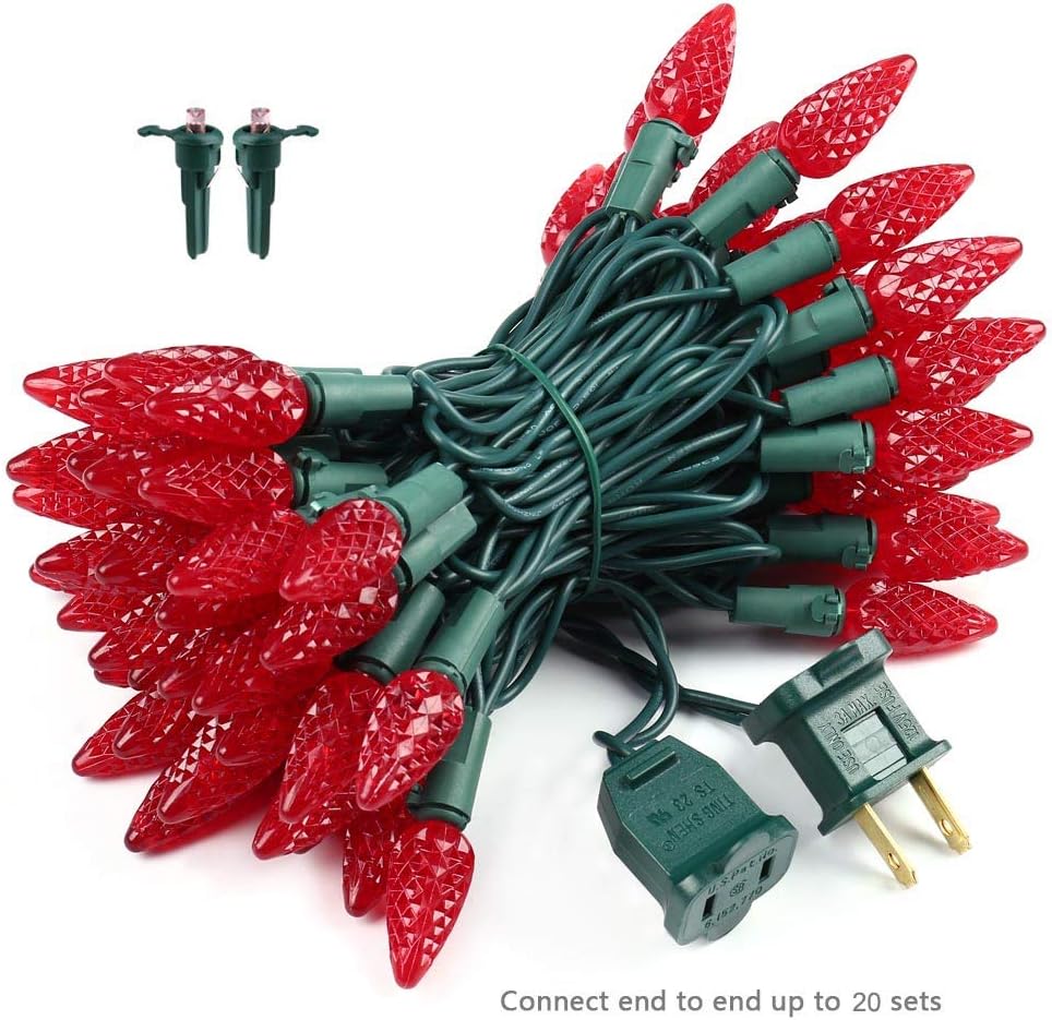 Brizled Upgraded Faceted C5 LED Red Christmas Lights, 100 LED 33ft Christmas tree Lights, 120V UL Certified Christmas Lights Set Connectable for Xmas Patio Party Roof Holiday Indoor Outdoor Decoration