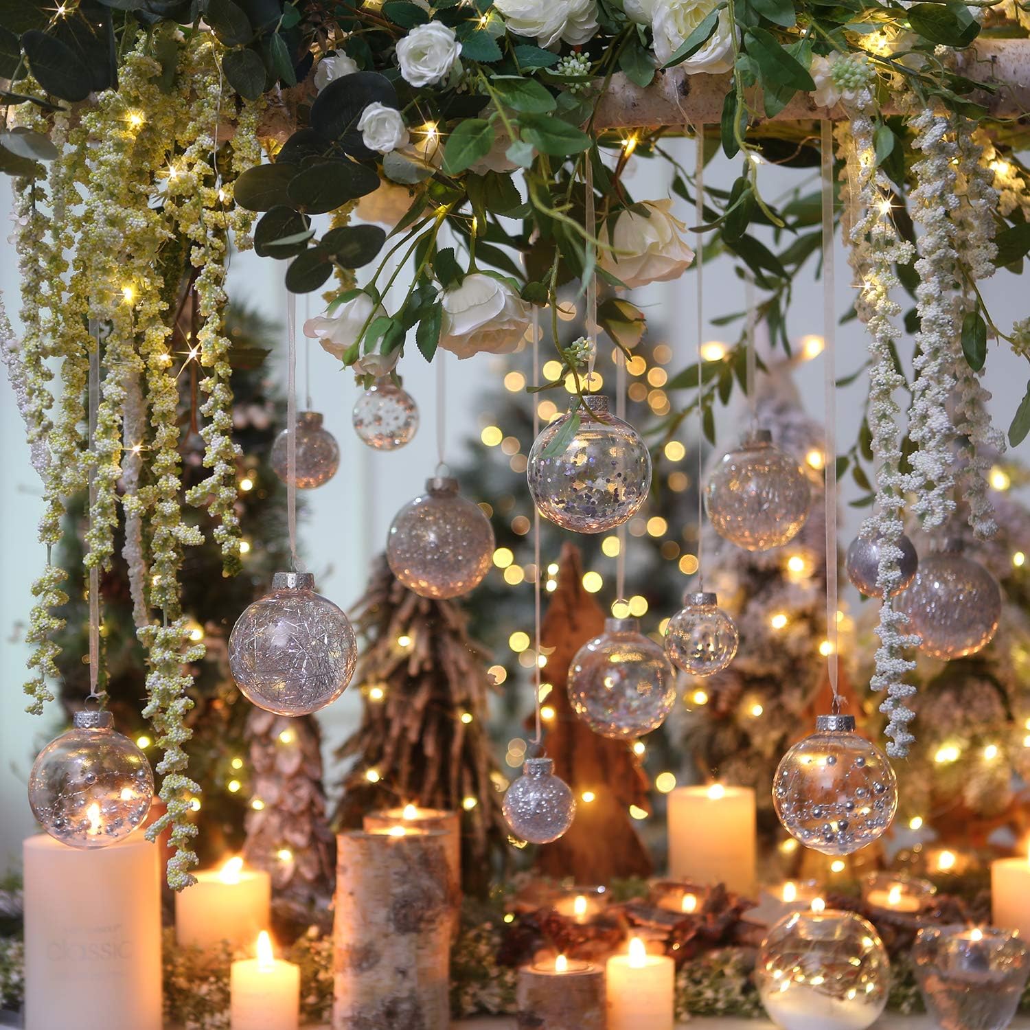 - TRANSPARENT & SPARKLING - These Christmas ball ornaments feature clear glaze base with sparkling decorations like glitter, sequins, tinsel and beads to provide a stunning shimmering look in the light. They will be perfect for decorating your home and become part of your holiday tradition
