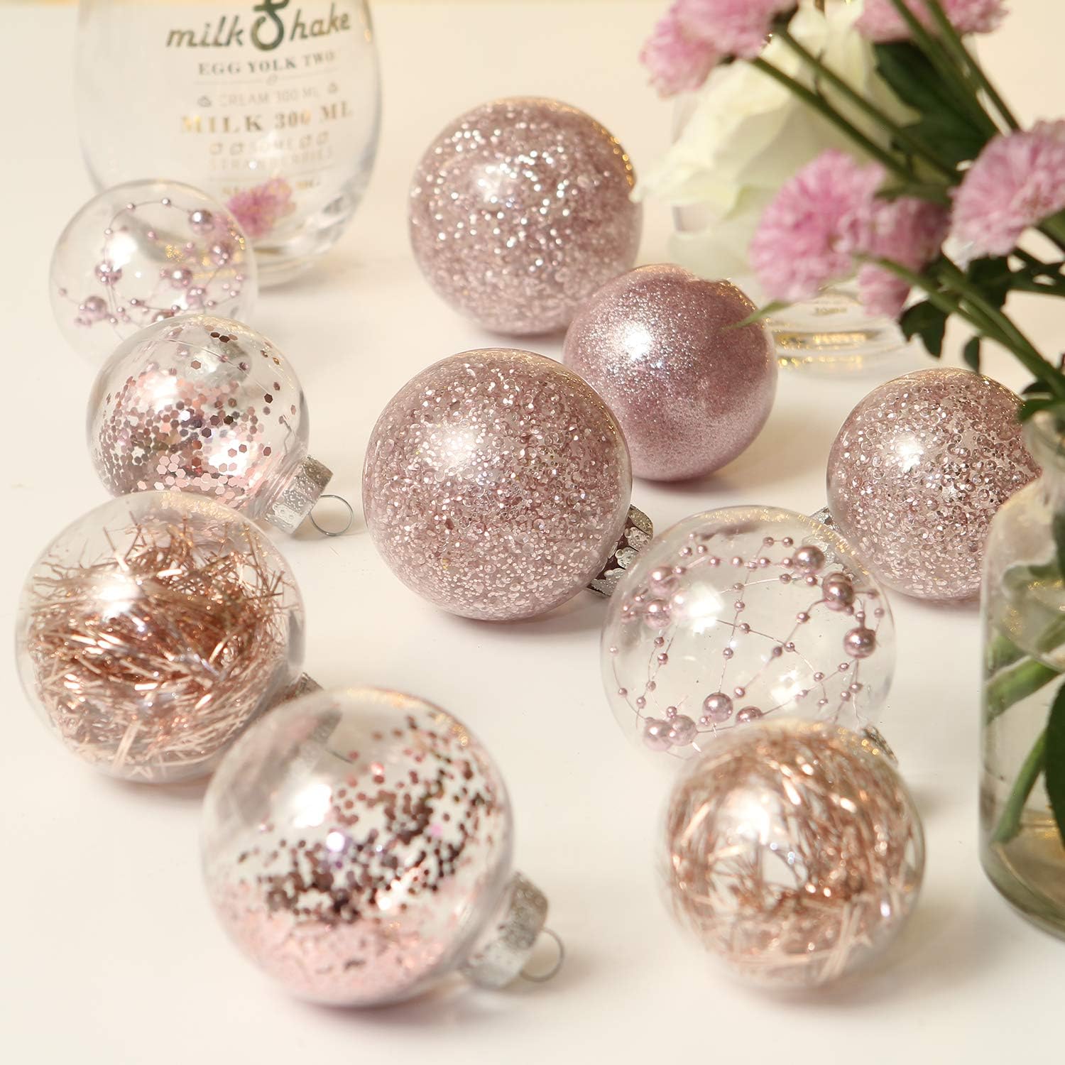 Sea Team Shatterproof Clear Plastic Christmas Ball Ornaments Decorative Xmas Balls Baubles Set with Stuffed Delicate Decorations (60mm/2.36 inch 30-Pack, Pinkish Gold)