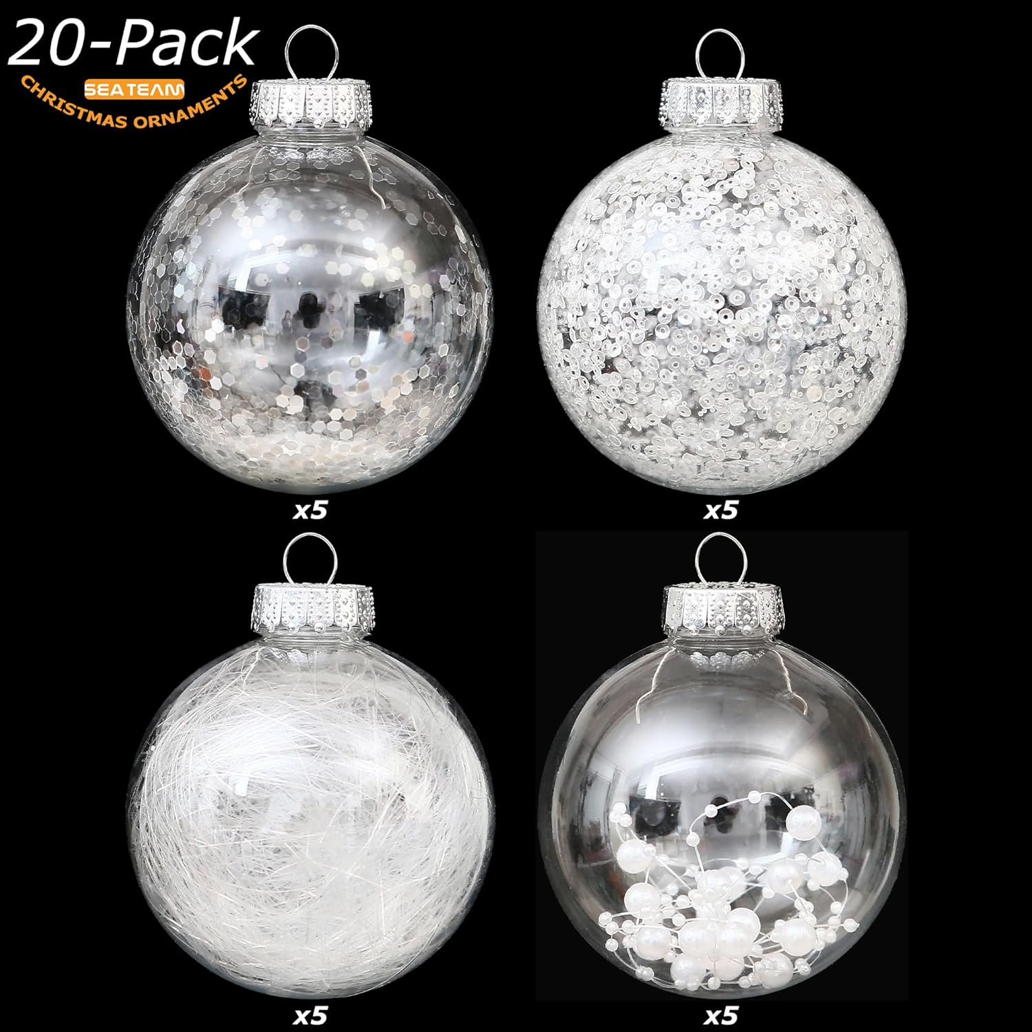 Sea Team Shatterproof Clear Plastic Christmas Ball Ornaments Decorative Xmas Balls Baubles Set with Stuffed Delicate Decorations (80mm/3.15 inch 20-Pack, White)