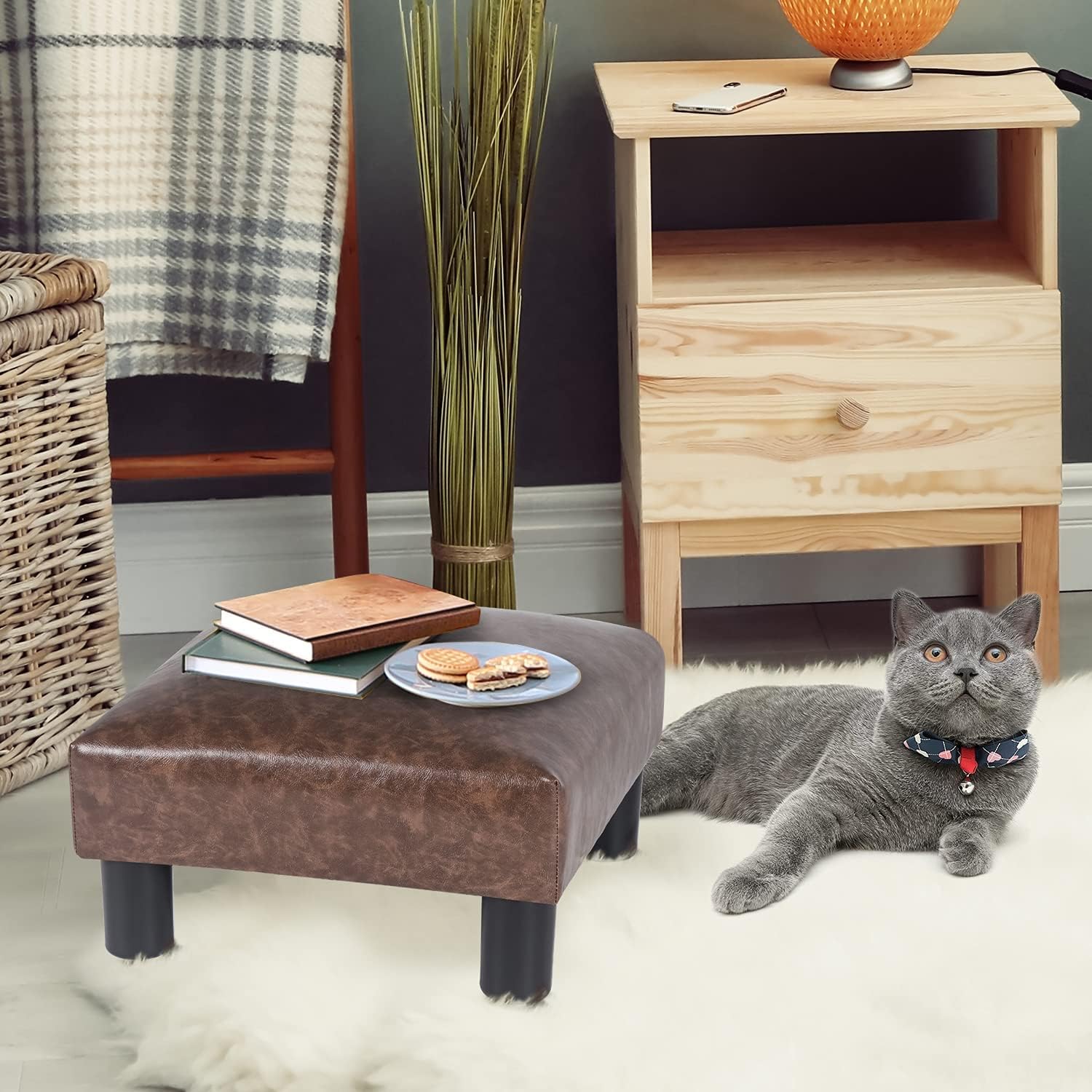 - SMALL OTTOMAN DIMENSIONS: 15.7” Length x 15.7” Width x 8” Height ; Featuring small size and light weight, our ottoman is convenient for you to move and transport to play its multifunctional role. This footrest small ottoman stool is compact enough to keep near your couch, under chair or even under a desk.