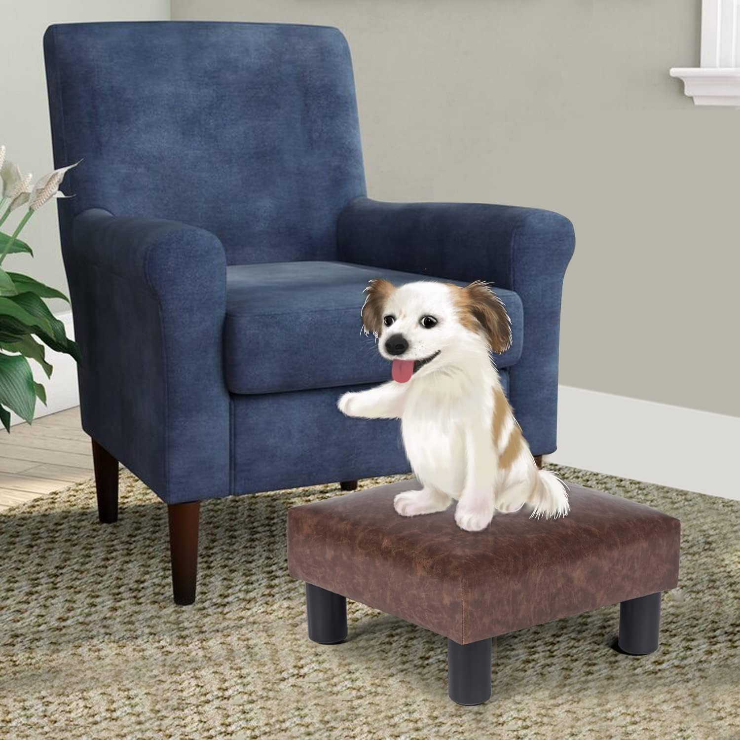 Joveco Small Footstool Ottoman Upholstered PU Leather Square Footrest Ottomans Small Foot Rest for Desk Couch Living Room Bedroom Office (Brown)