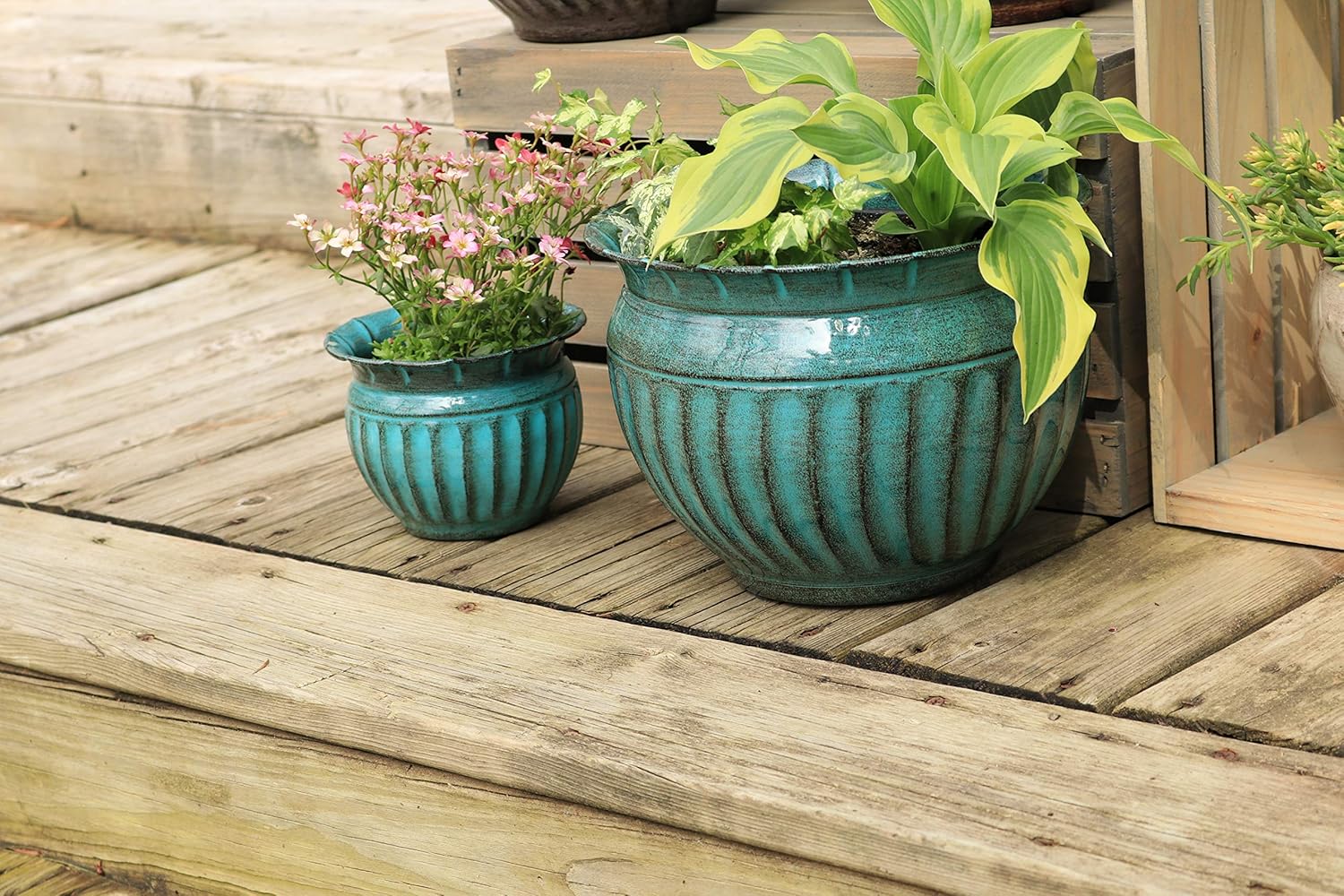 - -STYLE – From the Gateway Collection, the Sutton Classic premium IronStone spun planters have an embellished vertical wave design accompanied by a large curved rim. The high-gloss finish accents the two beautiful colors of Surf and Rosewood. They are available in 4 sizes.
