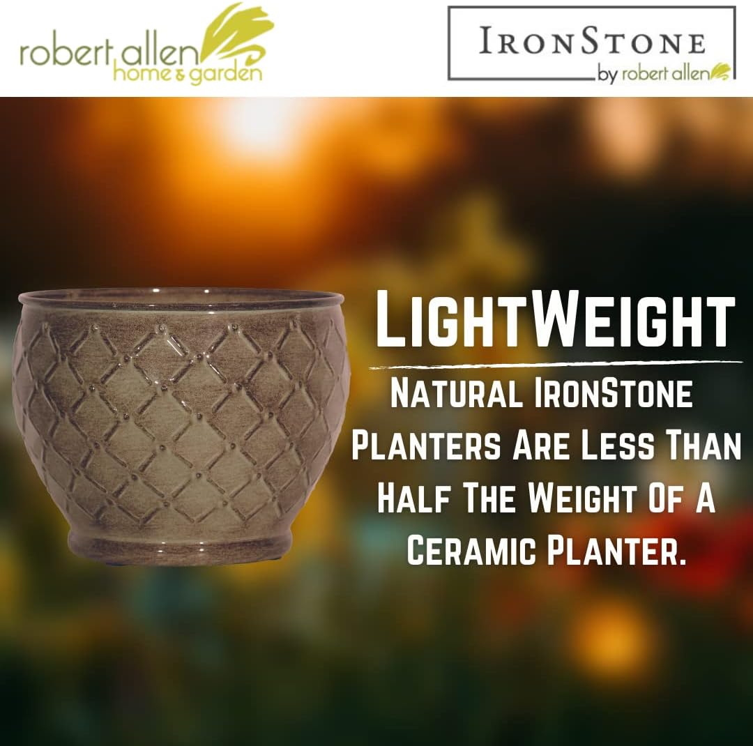 - -DRAINAGE – Contains a removable drain plug. Each IronStone planter comes with a drain plug that proves very useful whether inside or out during the changing seasons.