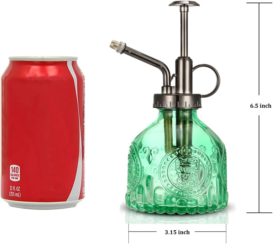 Glass Plant Mister Spray Bottle, Vintage Plant Spritzer Watering Can, Succulent Watering Bottle with Top Pump, Small Plant Sprayer Mister for Indoor Outdoor House Plant - Green