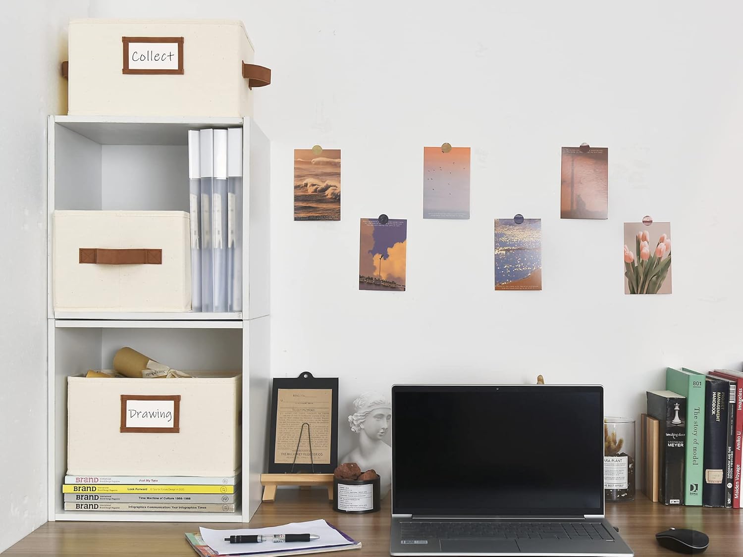 - Storage baskets with two sewn-in PU handles for easy carrying around, and the label holder for easy marking and identifying the items inside.