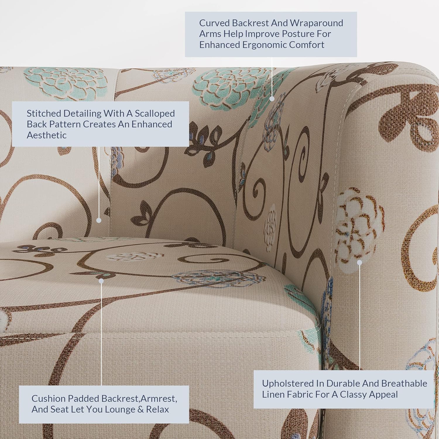 BELLEZE Living Room Chair, Linen Round Accent Barrel Chair, Club Tub Sofa Chair for Bedroom, Corner Chair with Flared Legs and Cozy Soft Padding - Highland (Floral Print)