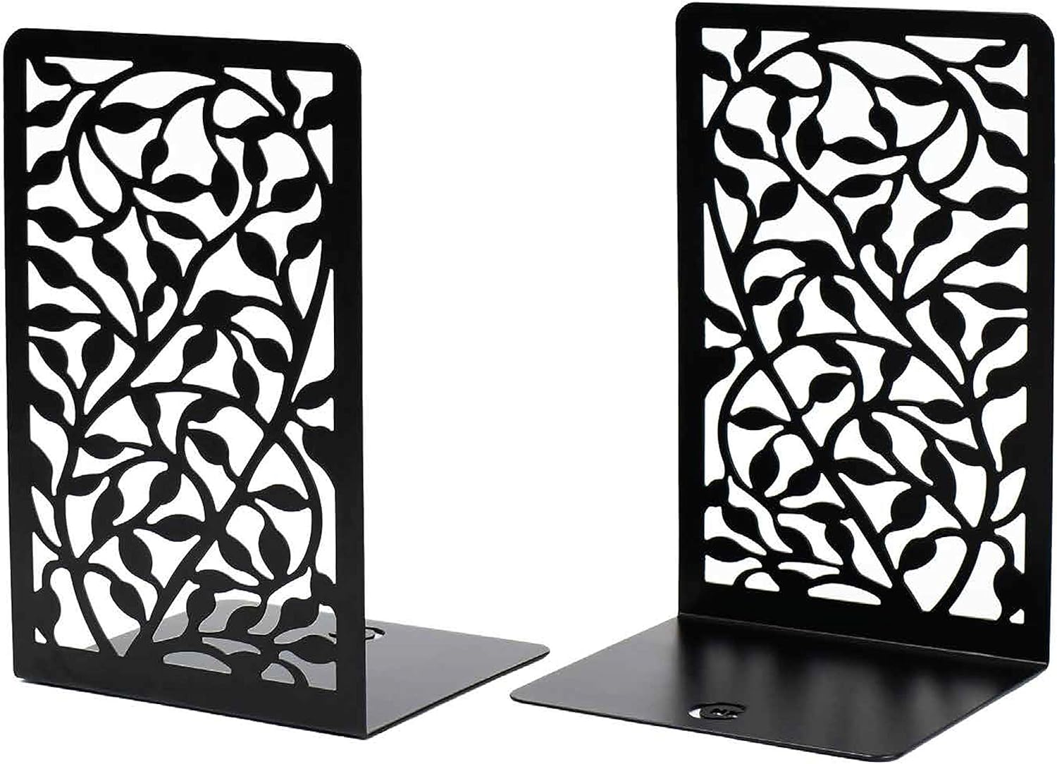 CNK Book Ends for Shelves - Metal Holders for Home Office Heavy Books, Shelf Stoppers, Decorative Set of 2 Black Infinite Leaves Bookends