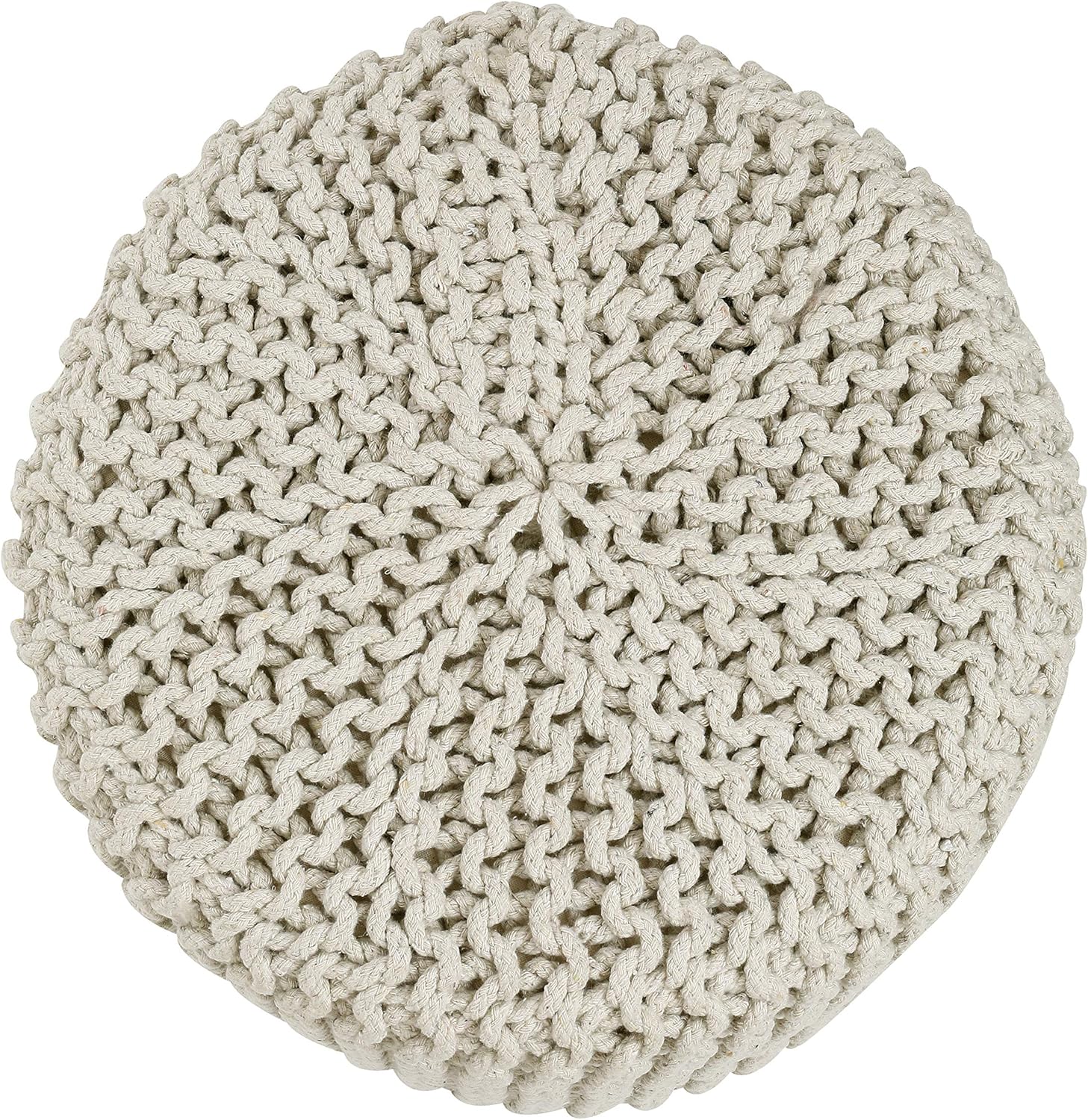 - HANDMADE FROM THE FINEST MATERIALS: The outer material on this eye-catching pouf ottoman is made from 100% cotton chord knitted in a unique pattern and filled with thermocol block inserts. Each floor pouf measures 16x16x16 inches and is handmade by our talented in-house artisans. This floor pouf is perfect when you need to rest your leg