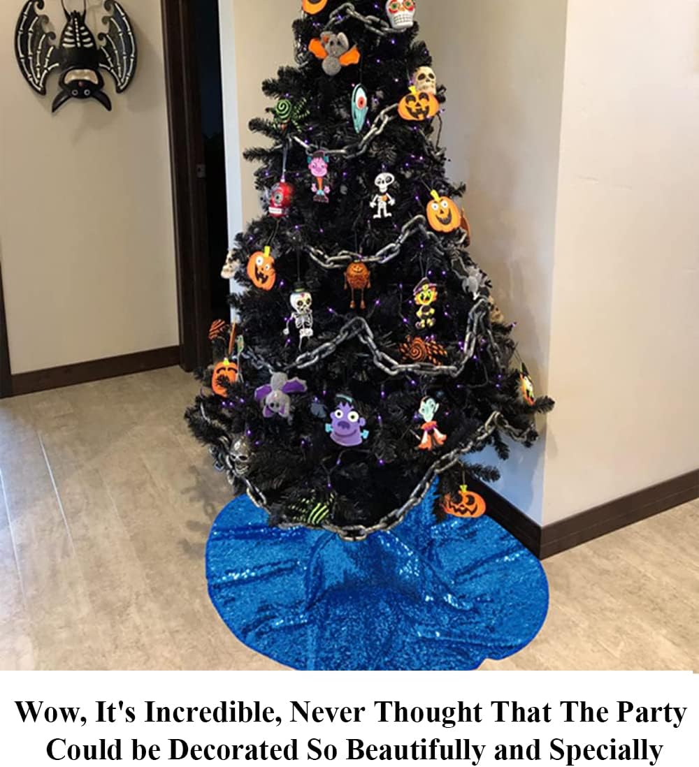 - Workmanship : glitter sequin tree skirt have been serged edges avoid falling sequins. Keep the tree skirt in the lamplight or sunlight, it sure to give you a big surprise.