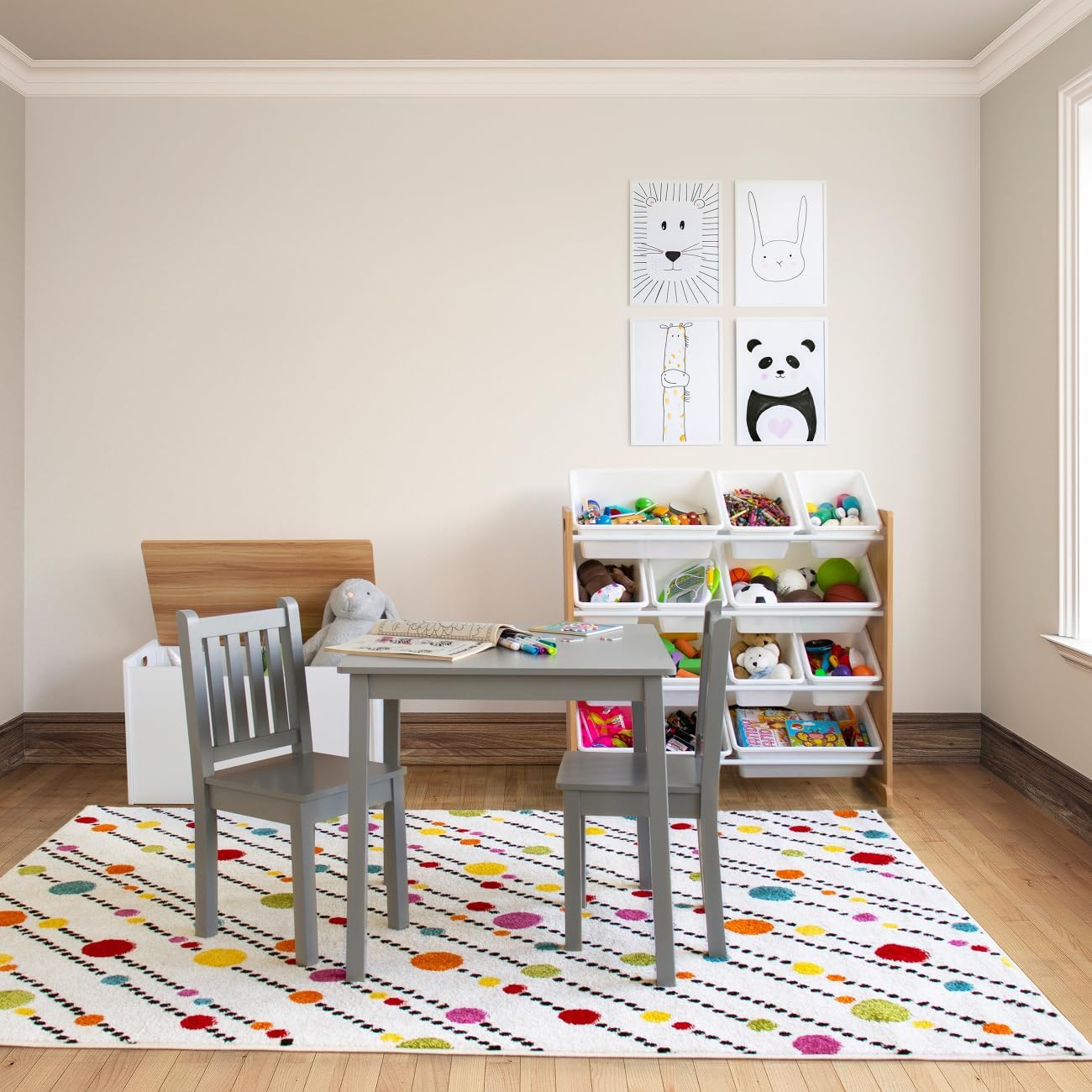 - Organize & Declutter Easily – This space-saving toy organizer includes 12 plastic bins (8 standard, 4 large) that help sort and store toys, books, and games, making clean-up quick and simple.