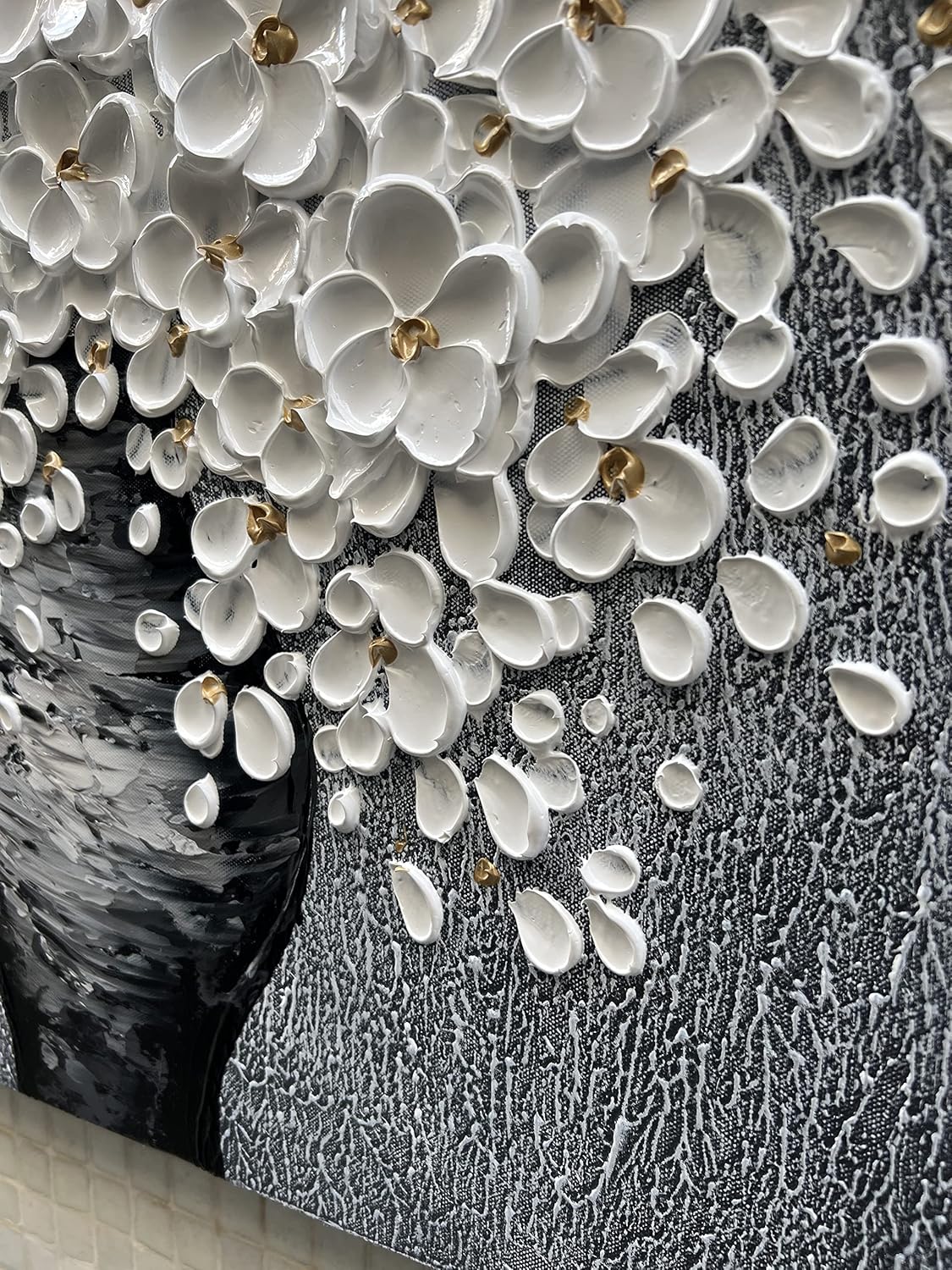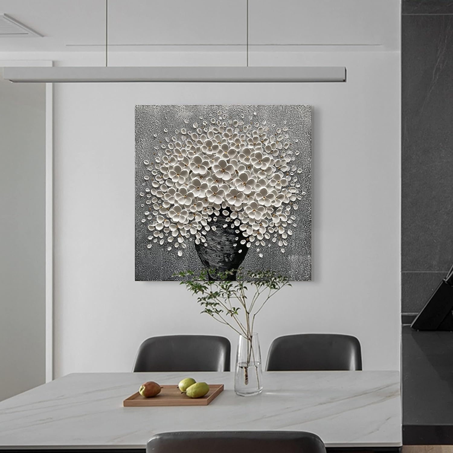 100% Hand-Painted White Flower Art Oil Painting, Modern Home Furnishing Canvas Painting Decoration, 3D Abstract Mural Painting,24x24 inch Frame Wall Art Hanging