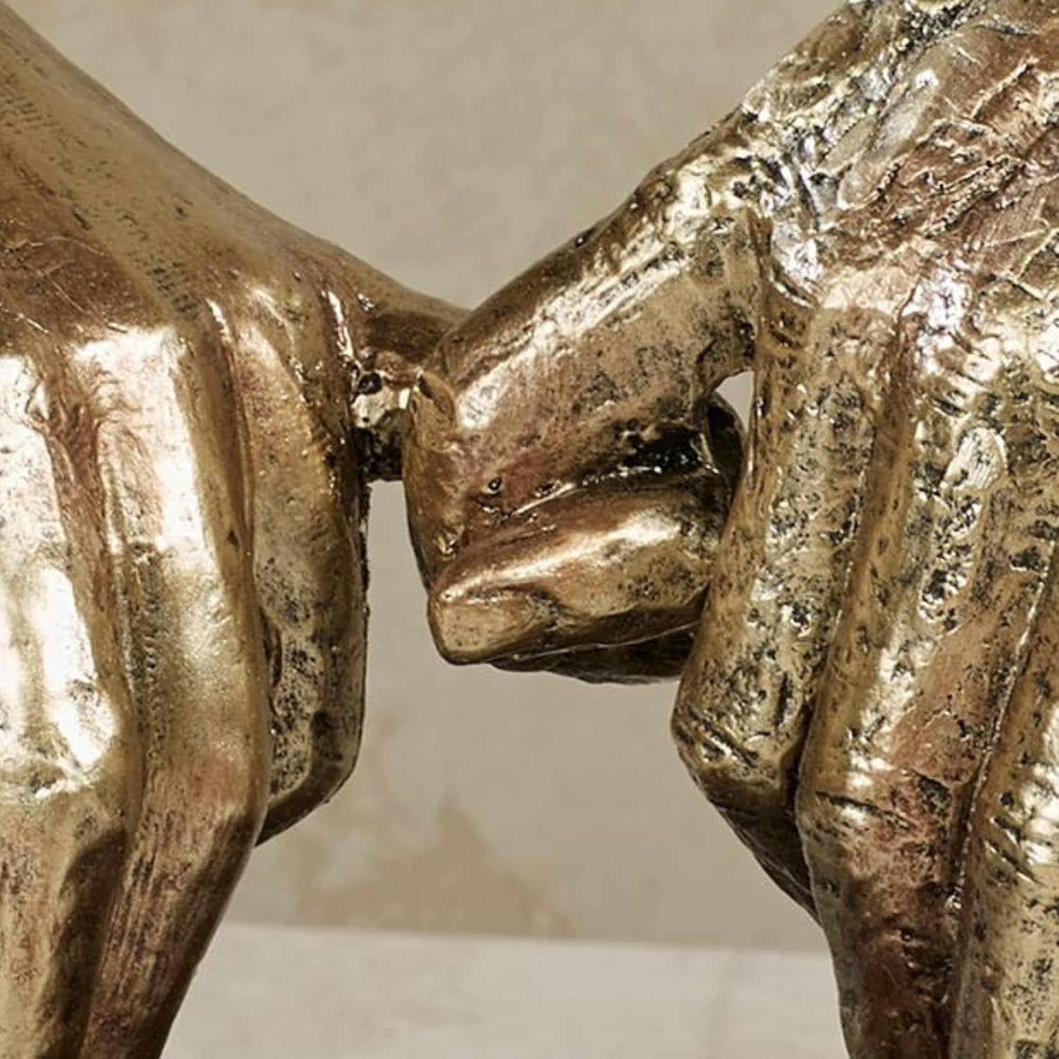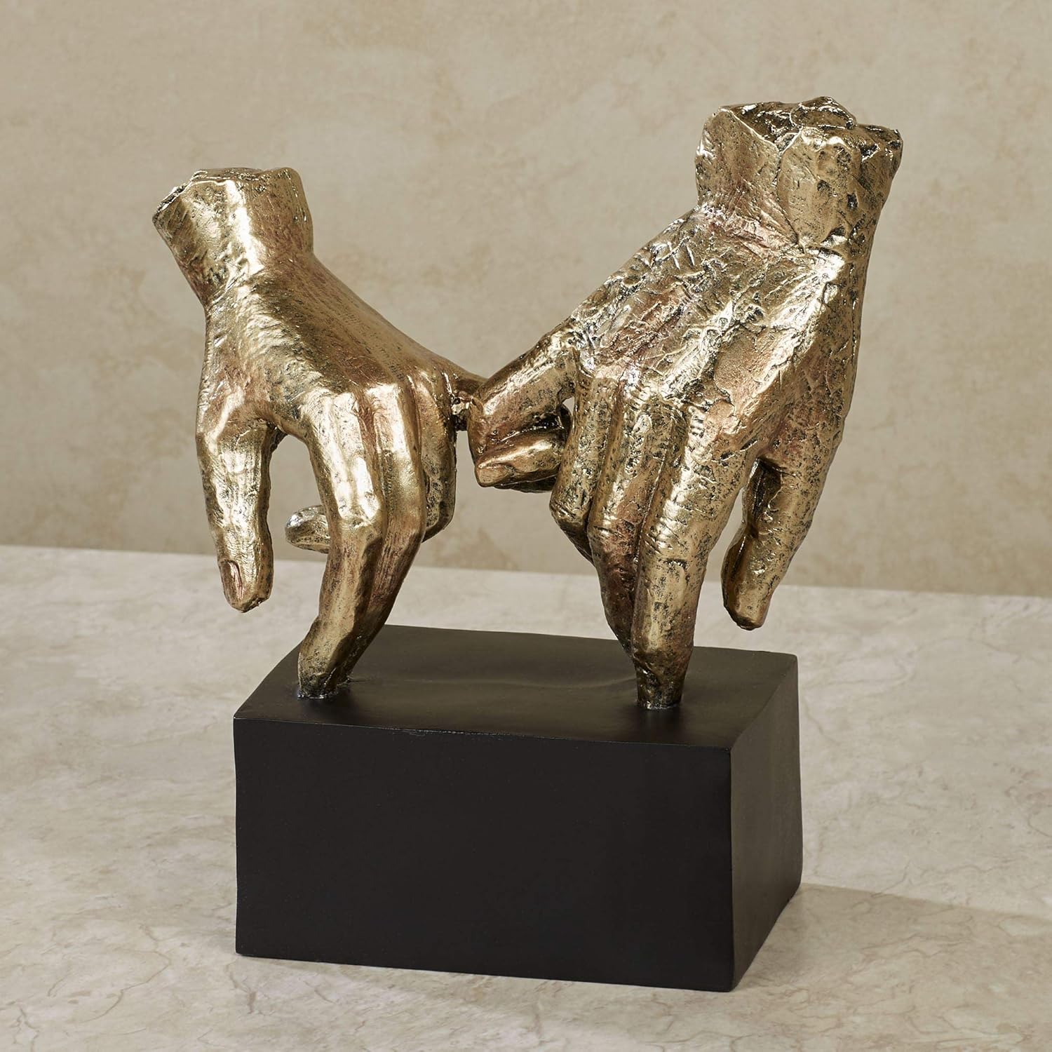 - ✋ SOPHISTICATED CRAFTSMANSHIP ✋ - This resin table sculpture depicts two hands clinging together in a lingering loving touch embrace. The bronze finish has light bronze and gold highlights. Intriguing piece rests on a black base.