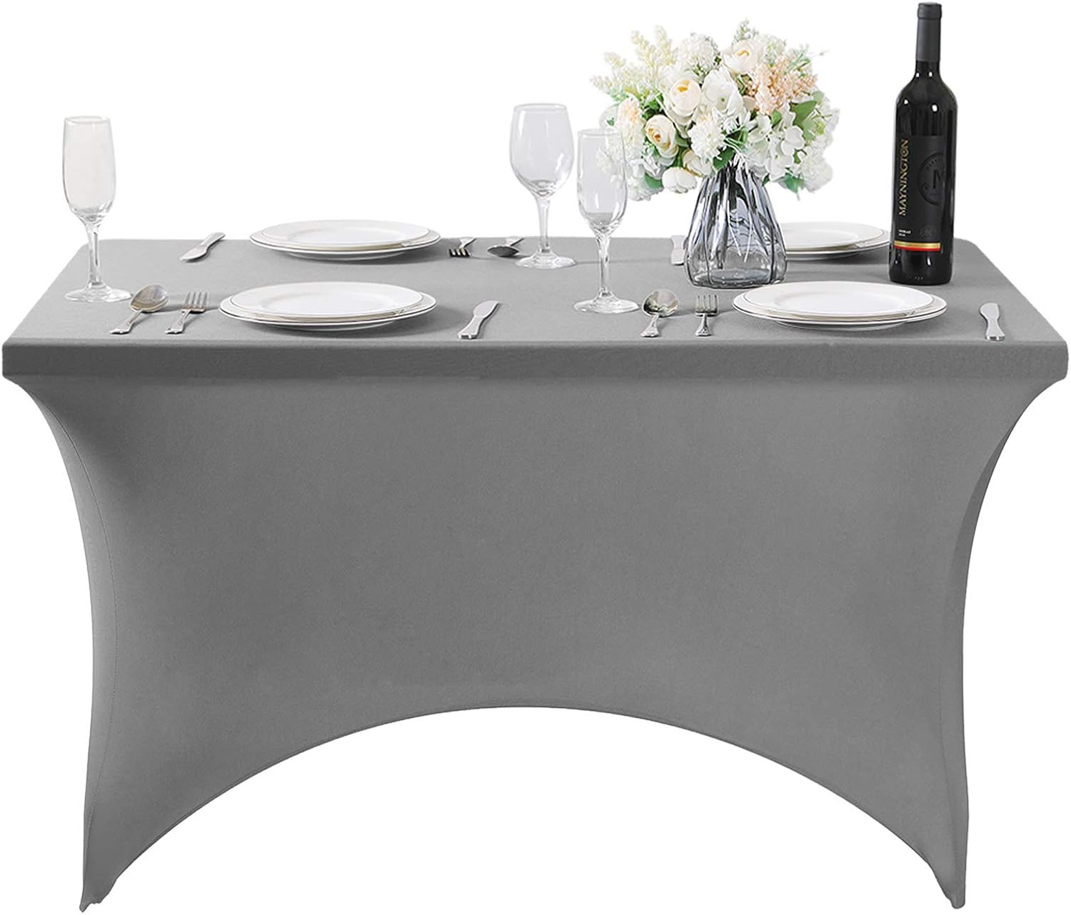 Spandex Table Cover for 4FT or 6ft or 8ft Table Universal Fitted Stretch Tablecloth for Party, Banquet, Wedding and Events-Gray