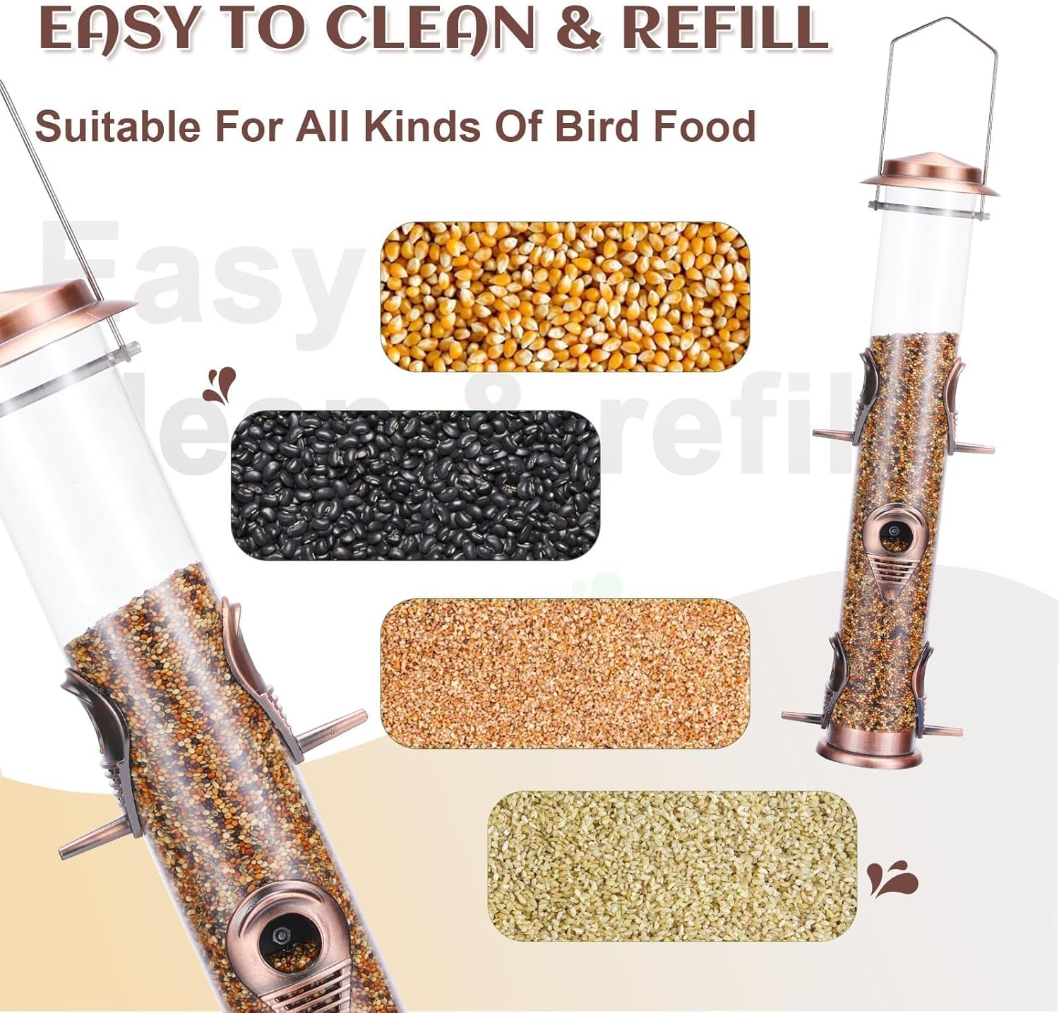 - UNIQUE AND CONVENIENT TUBE BIRD FEEDER: New lid design, this bird feeders for outside wild birds is very convenient. Outdoor bird feeder adds a touch of life and fun to your garden