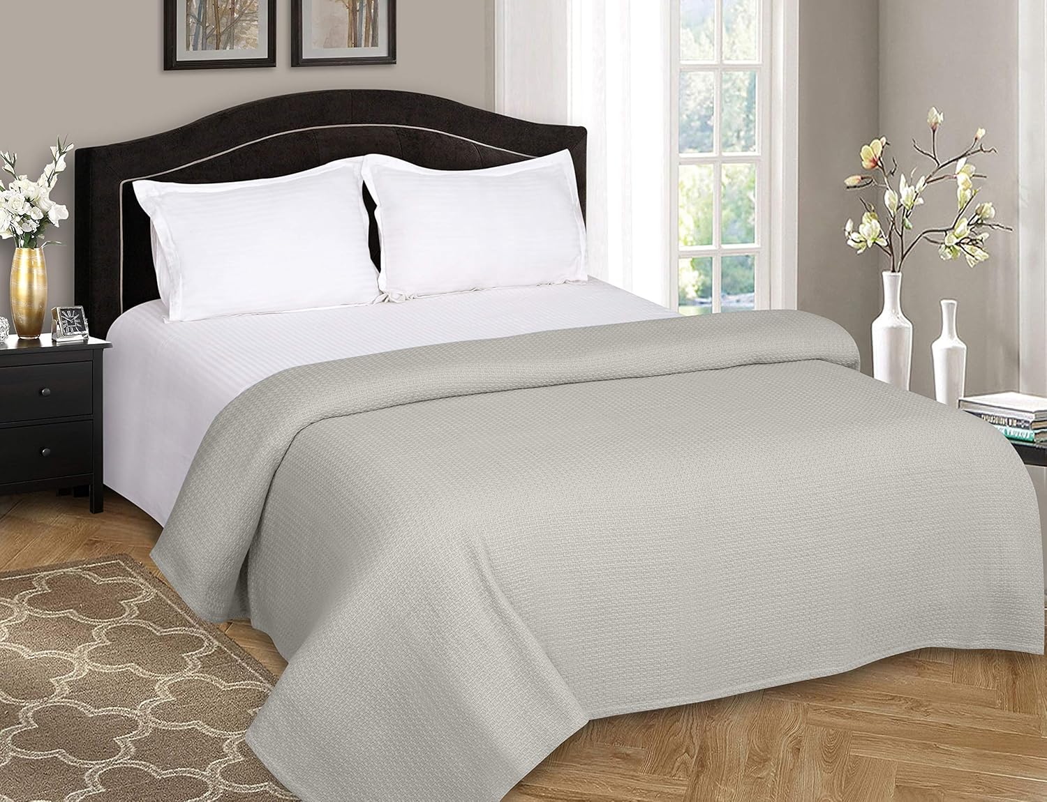BELIZZI HOME 100% Cotton Bed Blanket, Breathable Bed Blanket Twin Size, Cotton Thermal Blankets Twin, Perfect for Layering Any Bed for All Season, Light Grey