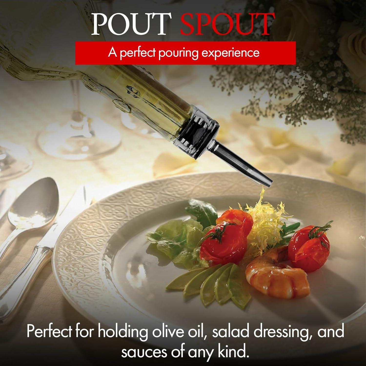 - Kitchen and More. The large 3in(7.6cm) X 11.9in(30cm) bottle size is great for kitchen use. Perfect for holding olive oil, salad dressing, and sauces of any kind. Includes a stainless-steel pout spout with a dip- free top to ensure a perfect pouring experience while cooking or eating. Olden-style restaurants love using these bottles as dressing bottles. The bottle can also be used as decoration around your house, bar, or office. Also use the bottle for art projects.