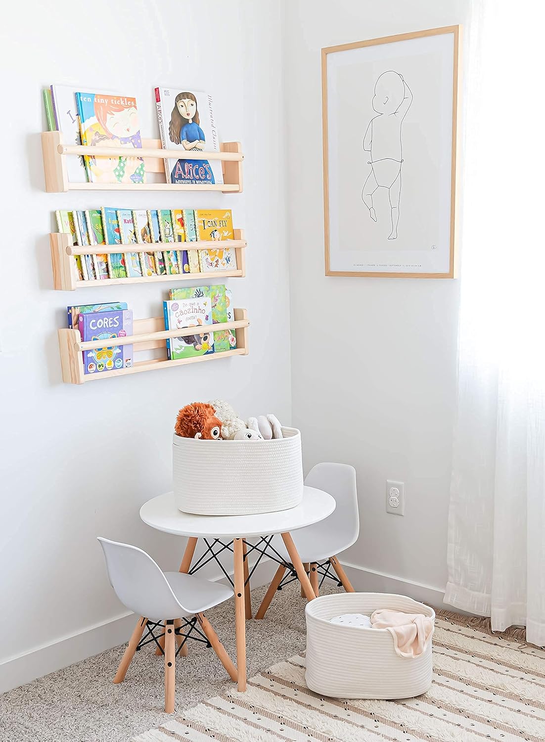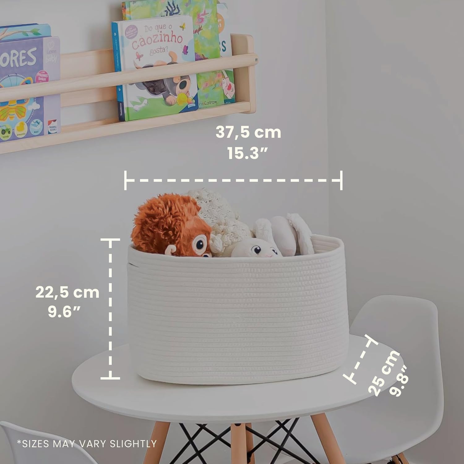 - Discrete, Built-In Carry Handles – These fabric rope baskets for storage also feature slim hand holds built right into the sides of each round basket for a seamless look that’s also functional. Perfect for picking up toys or carrying items around the house.