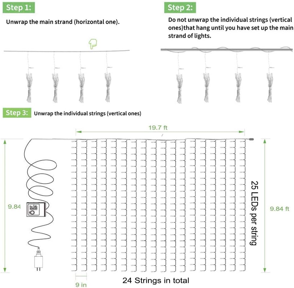 - [20 ft x 10 ft Curtain Lights] Boasting 600 LED lights, 2-3 times wider than others, making it ideal for outdoor decor. The product has an IP44 weatherproof rating, but please ensure you protect the plug and controller, as they are not waterproof. (please Note: they are NOT connectable)