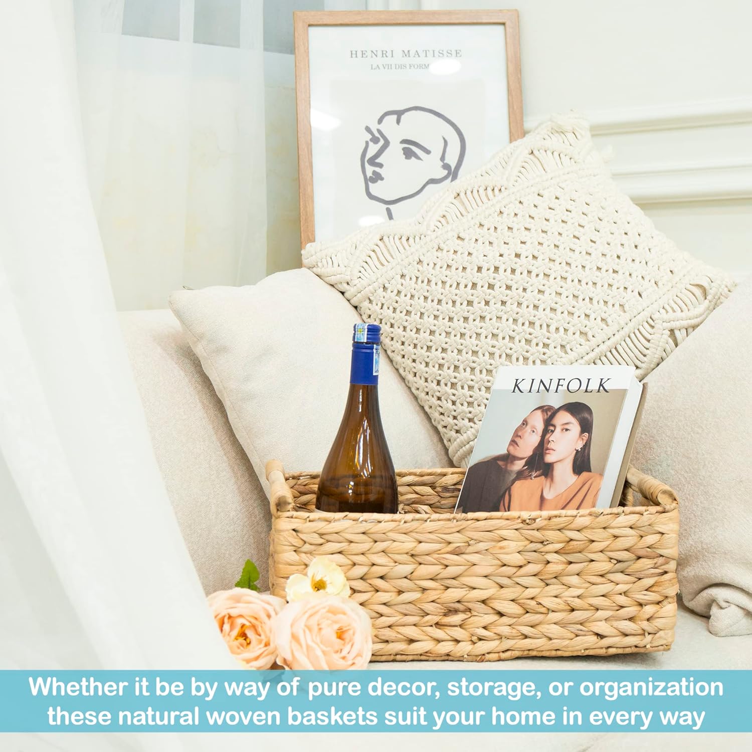- ✅ Wicker Baskets - Whether it be by way of pure decor, storage, or organization for kitchen, pantry, or bathroom. This natural water hyacinth basket suit your home in every way. The rectangular storage basket is great for magazines, games, pet toys, media, household items.
