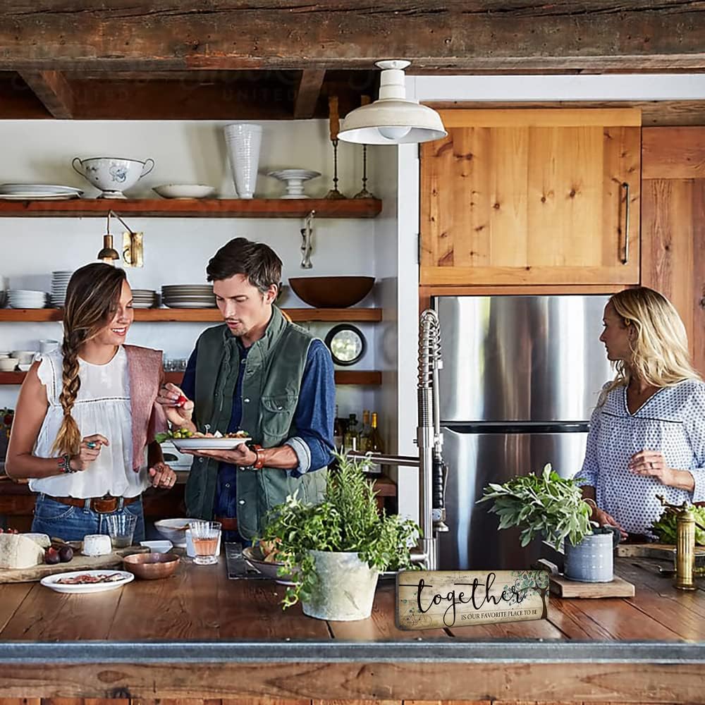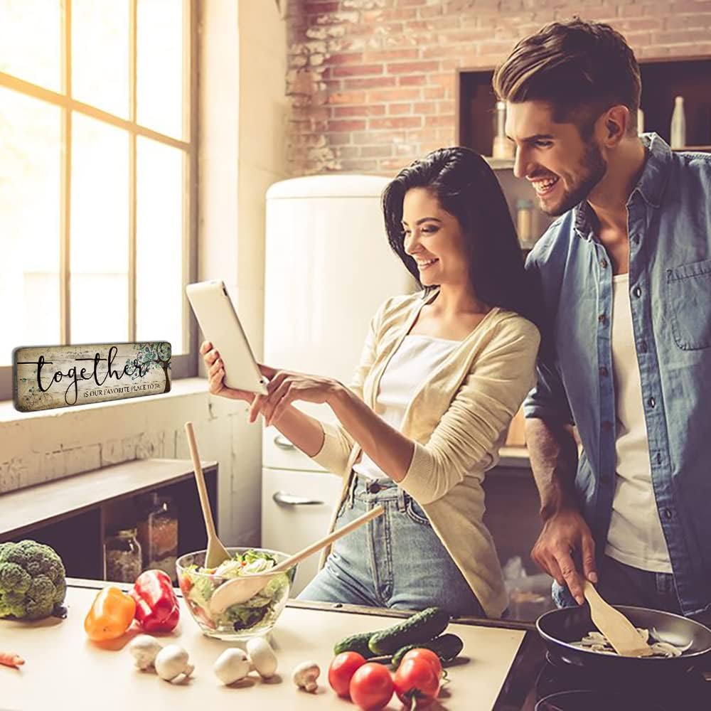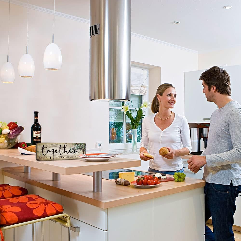 Family Art Decor Inspirational Quotes Wall Hanging Sign - Together is Our Favorite Place to Be - Motivational Home Art Decor Wood Plaque Sign 16"x5"