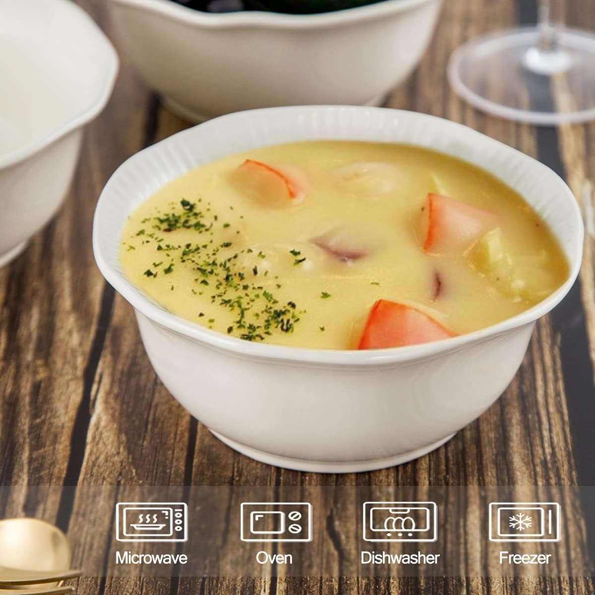 - Novelty Lotus Shape: With the design with exquisite and unique patterns outside, each bowl looks unique, artistic and elegant that bringing you visual enjoyment. Each soup bowl crafted with lotus shape, which is not only long-lasting but timeless and be perfectly matched with a variety of tableware.