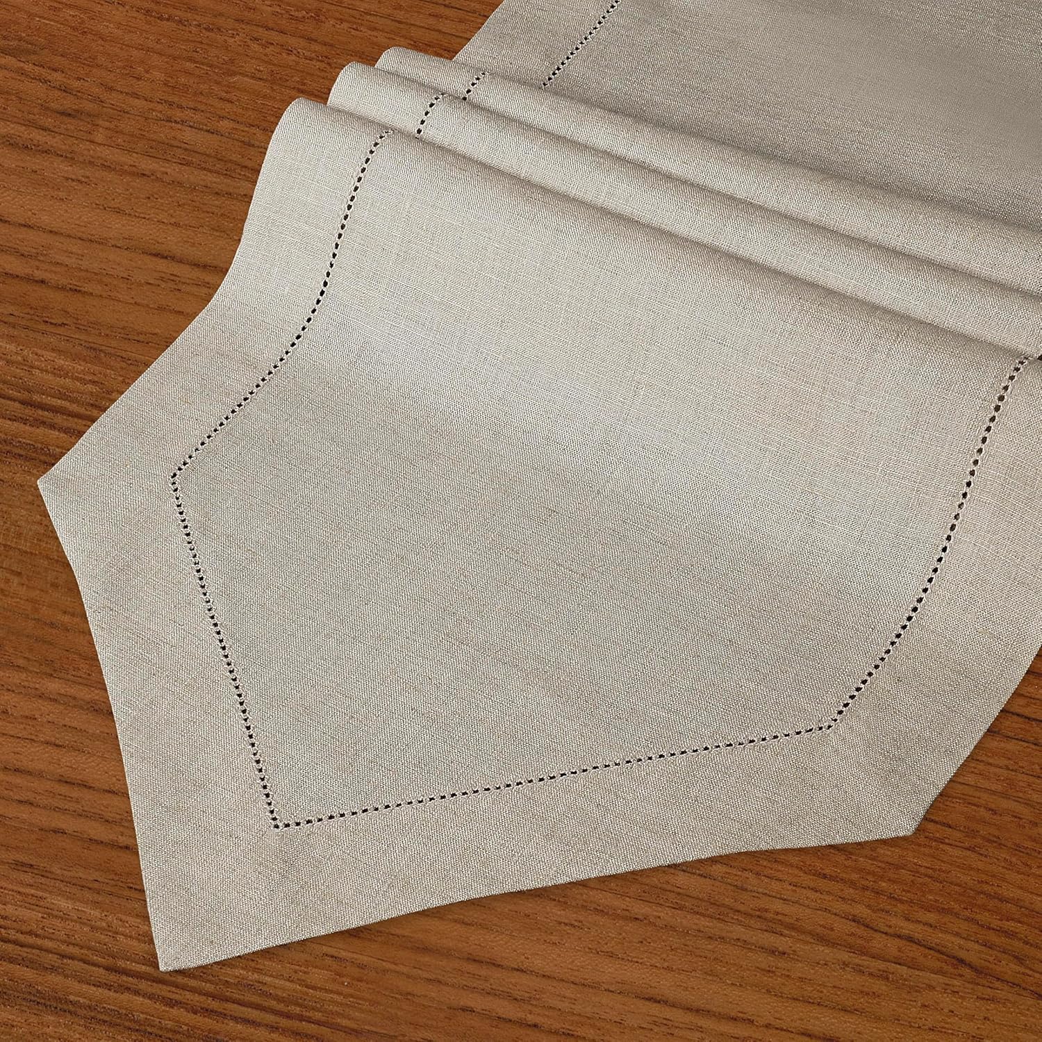 - PRODUCT - Natural Linen Table Runner, Diamond, 14 x 108 Inch; handcrafted by specially trained artisans in small batches.