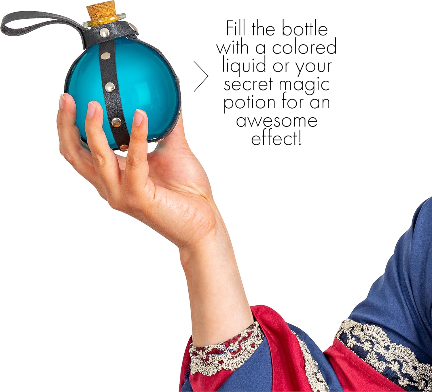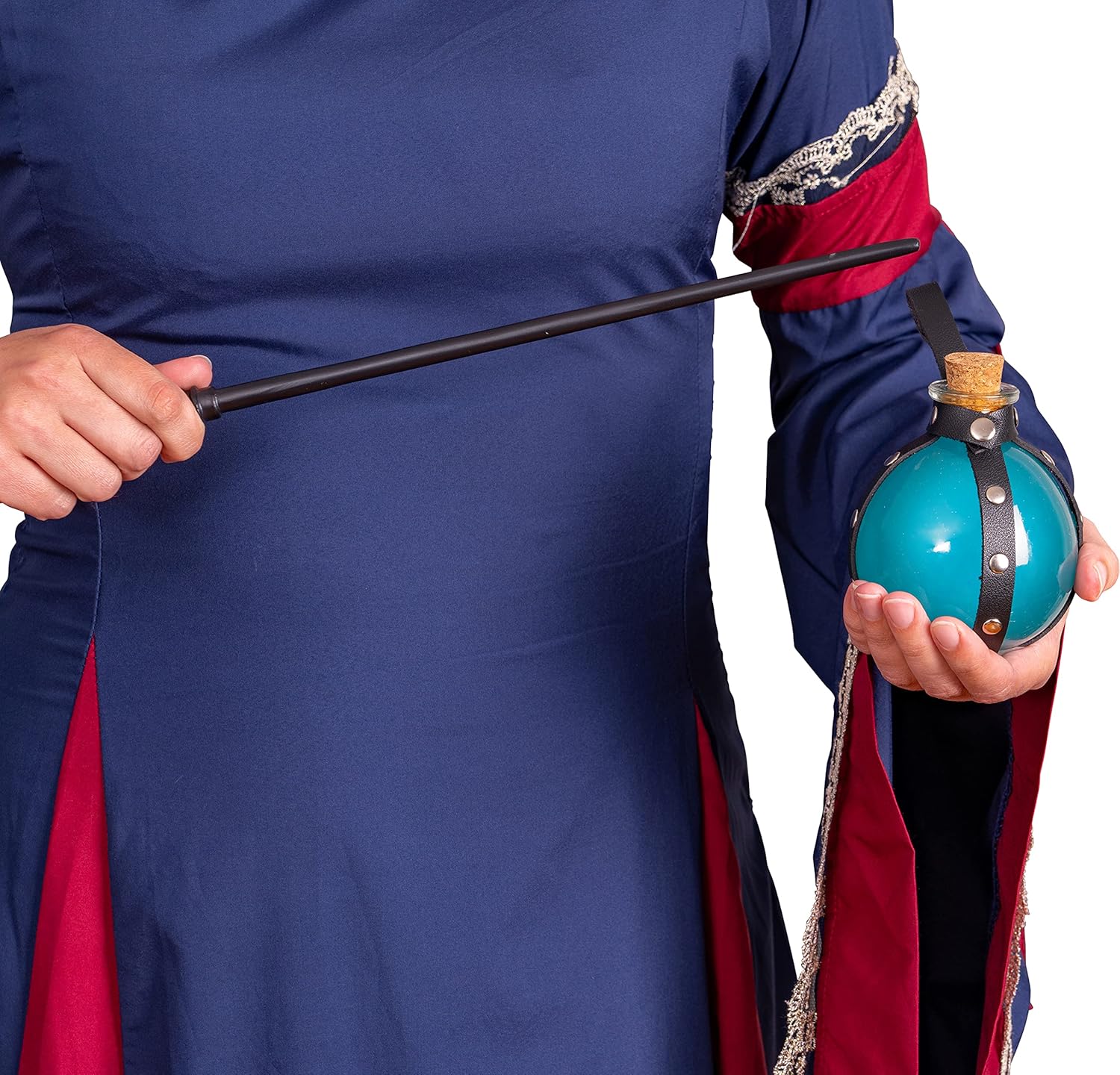 Skeleteen Dark Magic Potion Bottle - Black Wizard Potions Glass Holder with Cork Stopper and Faux Leather Harness with Holster Loop