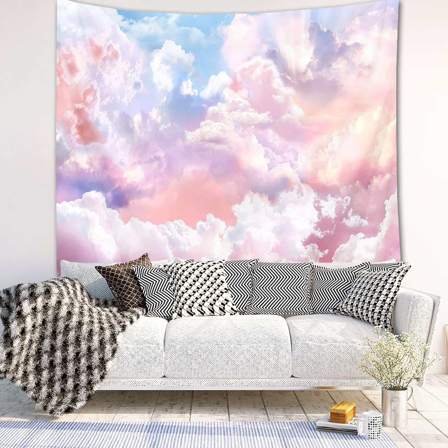 HVEST Pink Cloud Tapestry Colorful Abstract Clouds Natural Landscape Tapestries Wall Hanging for Bedroom Living Room Teen Dorm Indie Decor Poster Blanket,92.5x70.9 Inch