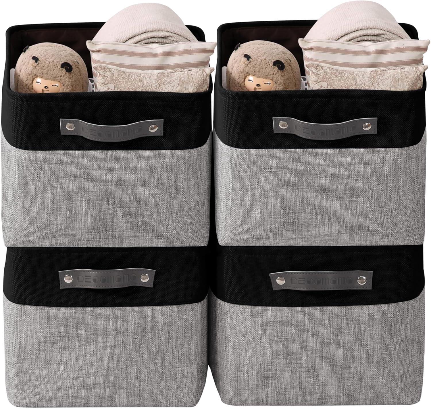 DECOMOMO Storage Baskets for Shelves - Fabric Closet Organizers and Storage Bins, Perfect Baskets for Organizing Closet Toys Nursery (Grey and Black, Large - 4 Pack)