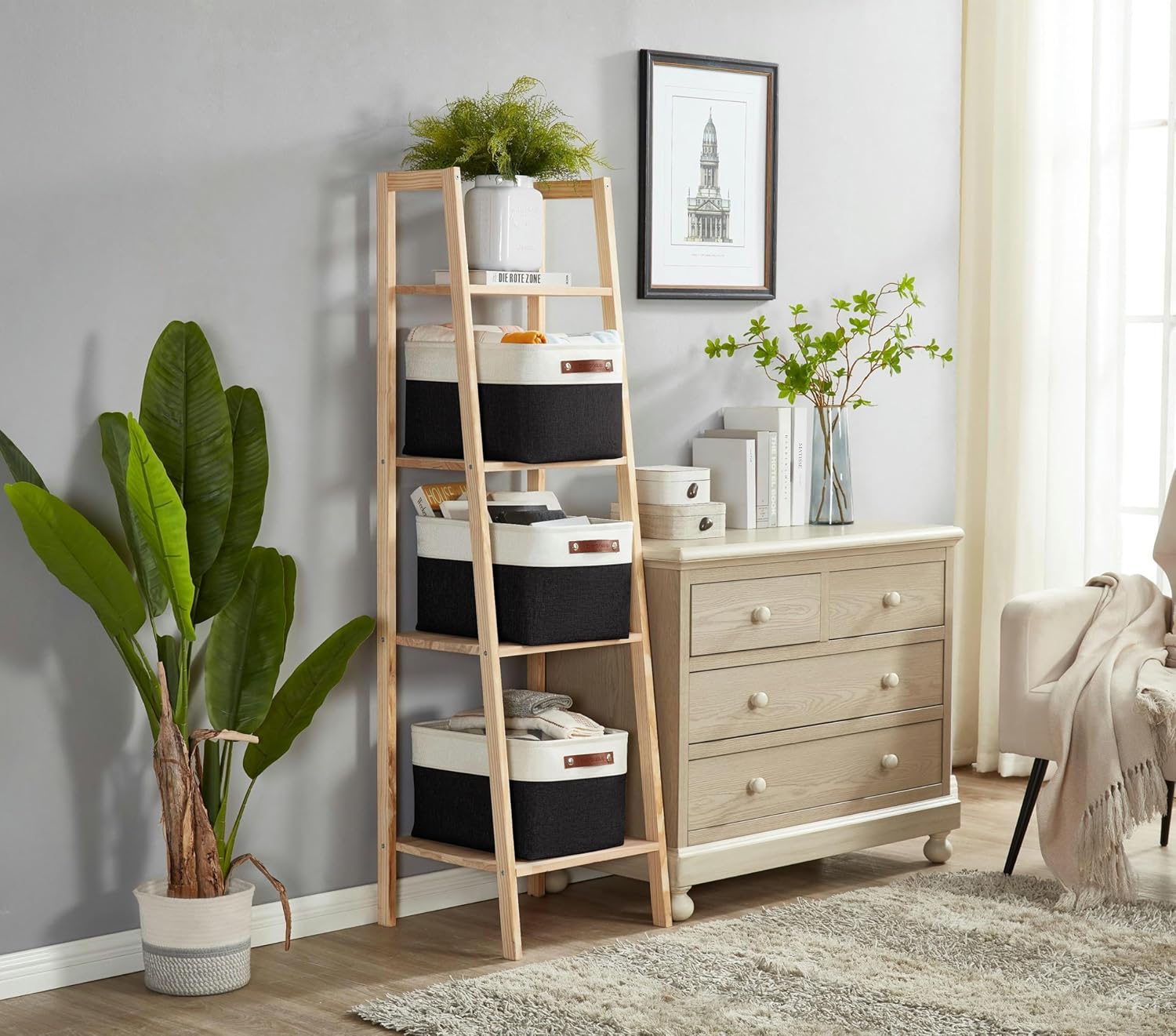 DECOMOMO Storage Bins Fabric Storage Baskets for Shelves, Linen Closet Organization Toys Nursery (Black and White, Large - 4 Pack)