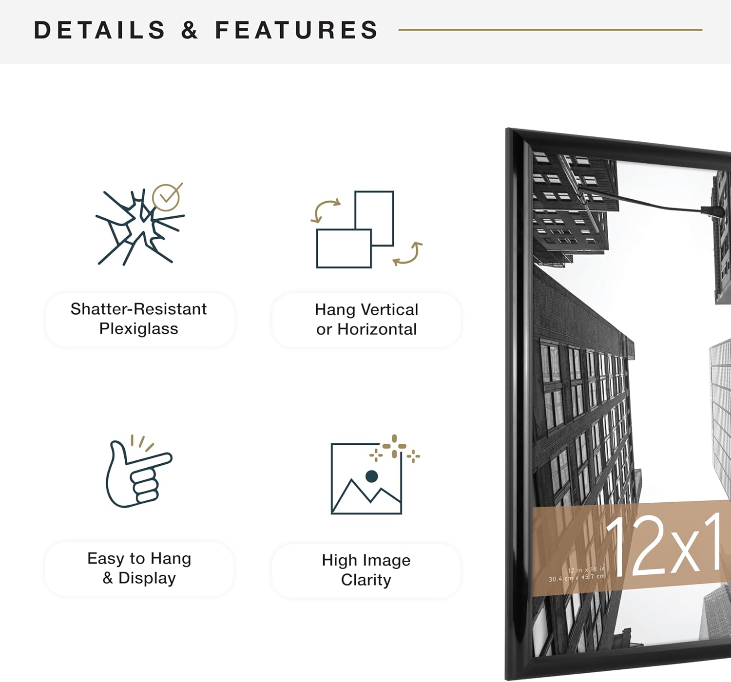 - 2 pk DESIGN: The Trendsetter's frame features a 1" wide profile and a high gloss black finish creating a traditional display for your favorite posters, prints or artwork