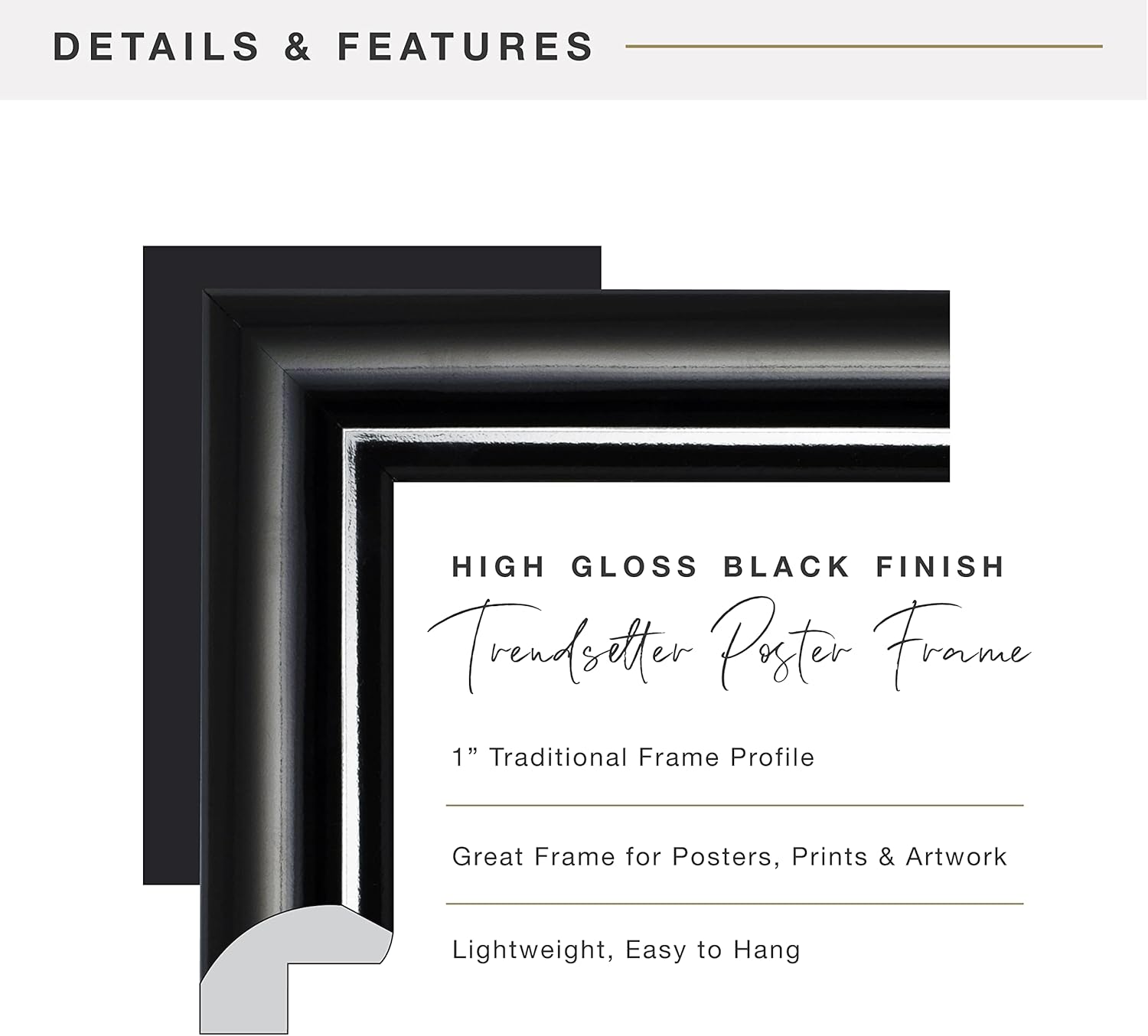 - 2 pk DESIGN: The Trendsetter's frame features a 1" wide profile and a high gloss black finish creating a traditional display for your favorite posters, prints or artwork