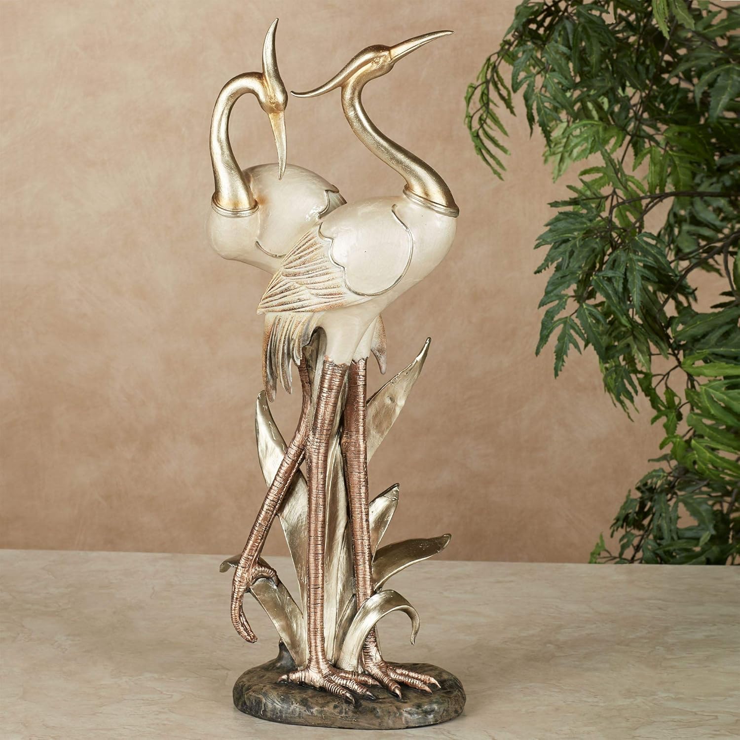 Touch of Class Pretty Pose Double Crane Metallic Table Sculpture - Ivory, Gold, Copper - Bird Figurine for Bedroom, Living Room, Dining Room, Home Office - Capiz Shell Look