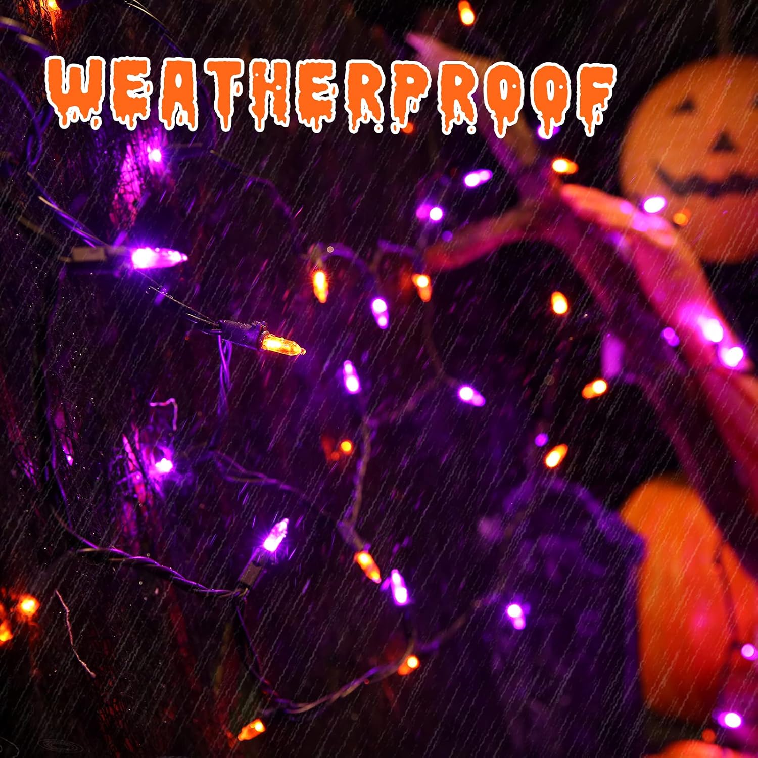 - Orange & Purple Mini Lights: 100 LED purple and orange glow halloween lights, UL certification, built-in fuse, replaceable fuse plug, to ensure safe use, value and quality. The package comes with extra light bulbs and fuses. Set up a Halloween scene with your family and make your house the envy of your neighbors.