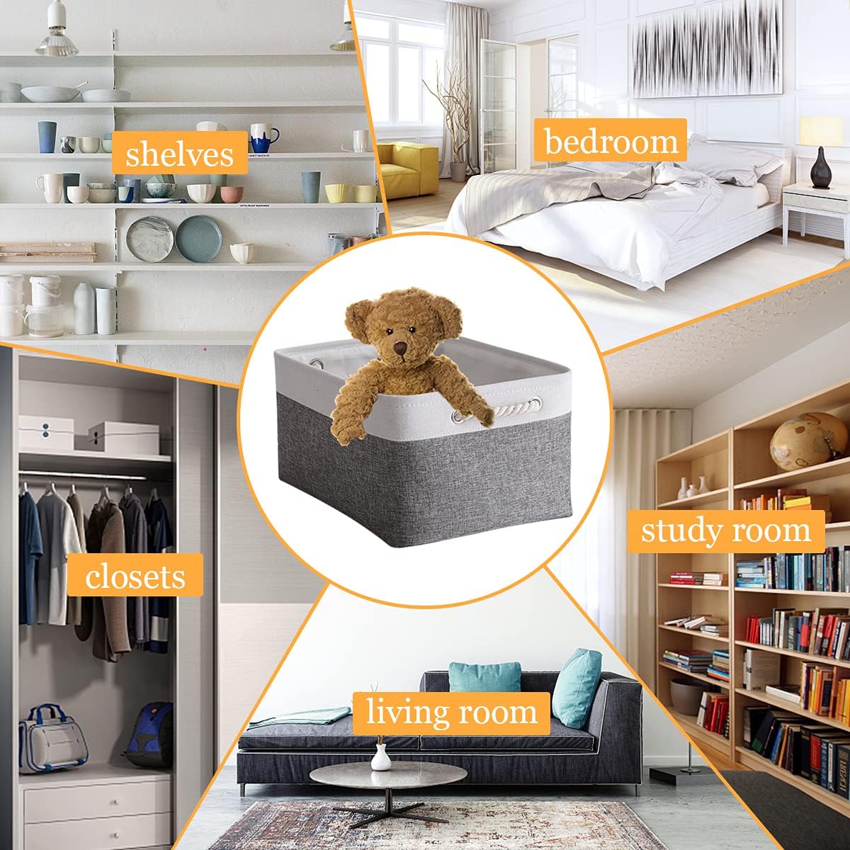 - LARGE STORAGE BIN & PROFESSIONALLY & PRACTICAL - 15.7L×11.8W×8.3H, can be used as storage baskets for shelves,closet storage bins, linen closet organizer,nursery basket storage,laundry baskets, bathroom towel storage,also can organizing baby Stuff,clothing, kid’s ,pet products, laundry, towel, bedsheet,sport gears,suitable use in bedroom, living room,study room,rest room,bathroom, kitchen,office,shelf,closet and cabinets. excellent choice for keeping your space nice,tidy and organized
