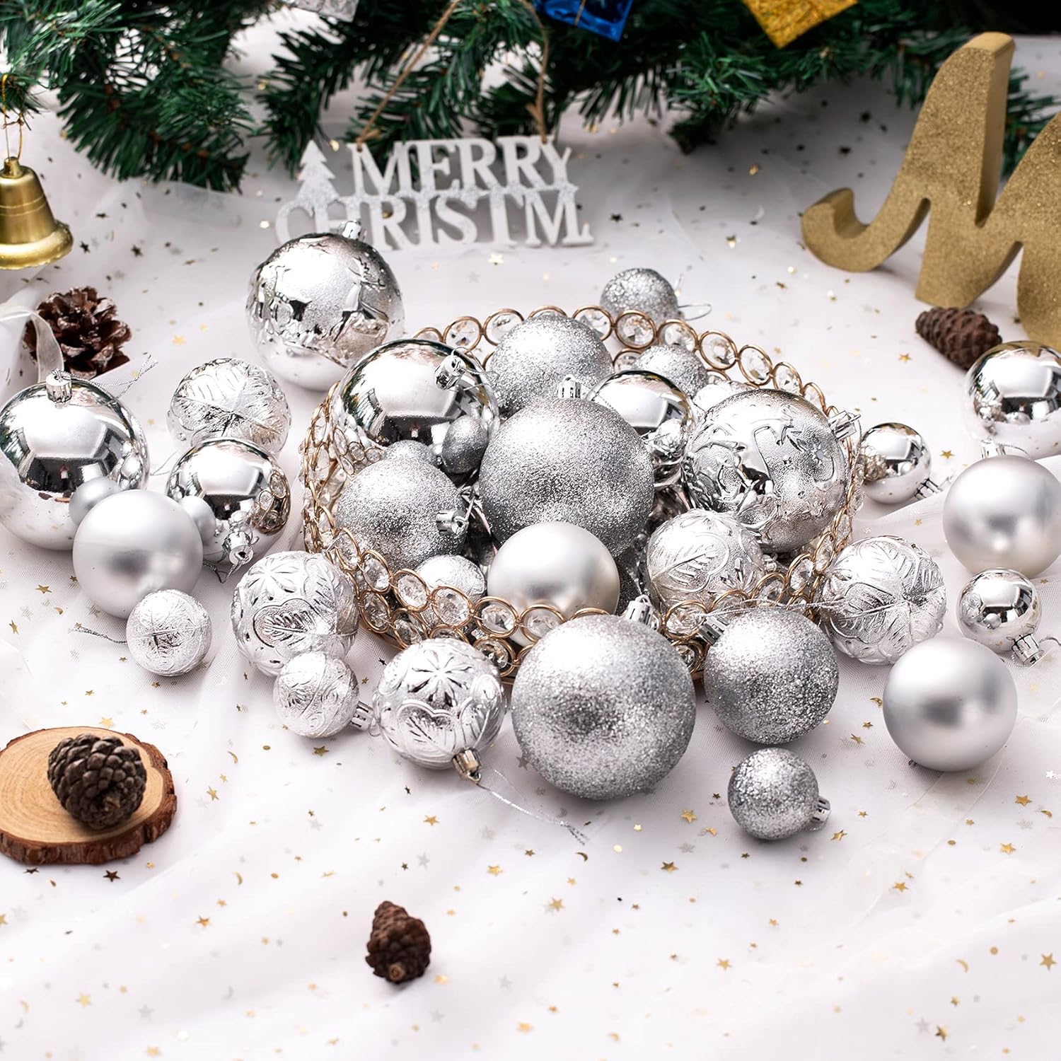 Christmas Ornaments for Xmas Trees,Silver Shatterproof Christmas Ball Ornaments