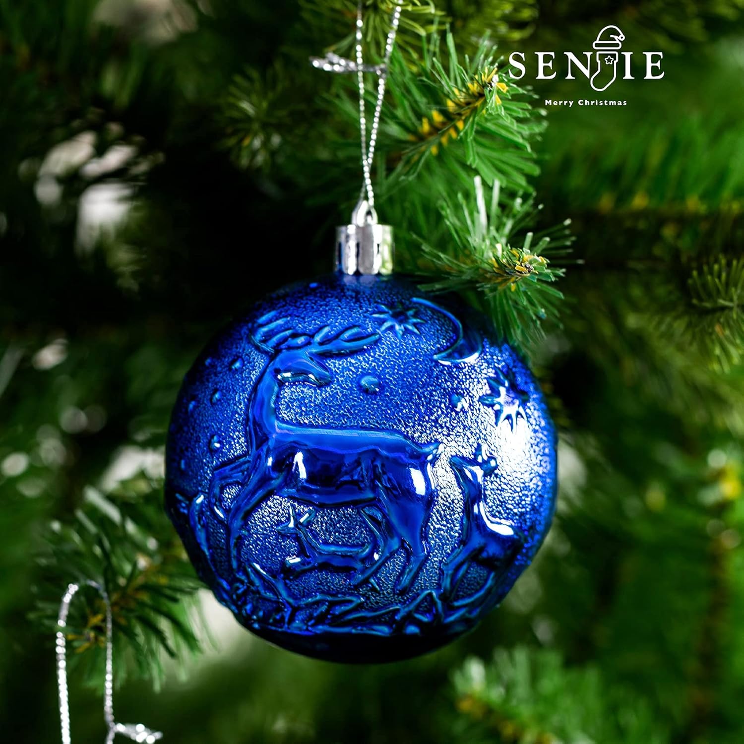 Senjie Blue Shatterproof Christmas Ornaments, 32 Pcs, Plastic, Hanging, Christmas, Wedding