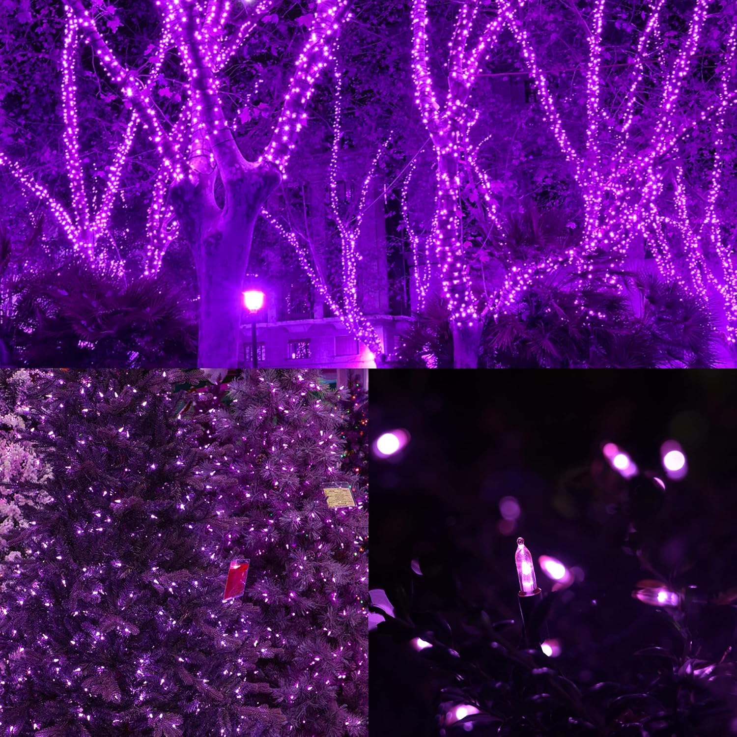 WATERGLIDE 50 LED Outdoor Halloween Lights, 16 FT Mini String Light with 8 Modes, Waterproof Battery Operated Tree Lights for Indoor Outdoor Patio Garden Party Wedding Decoration, Purple