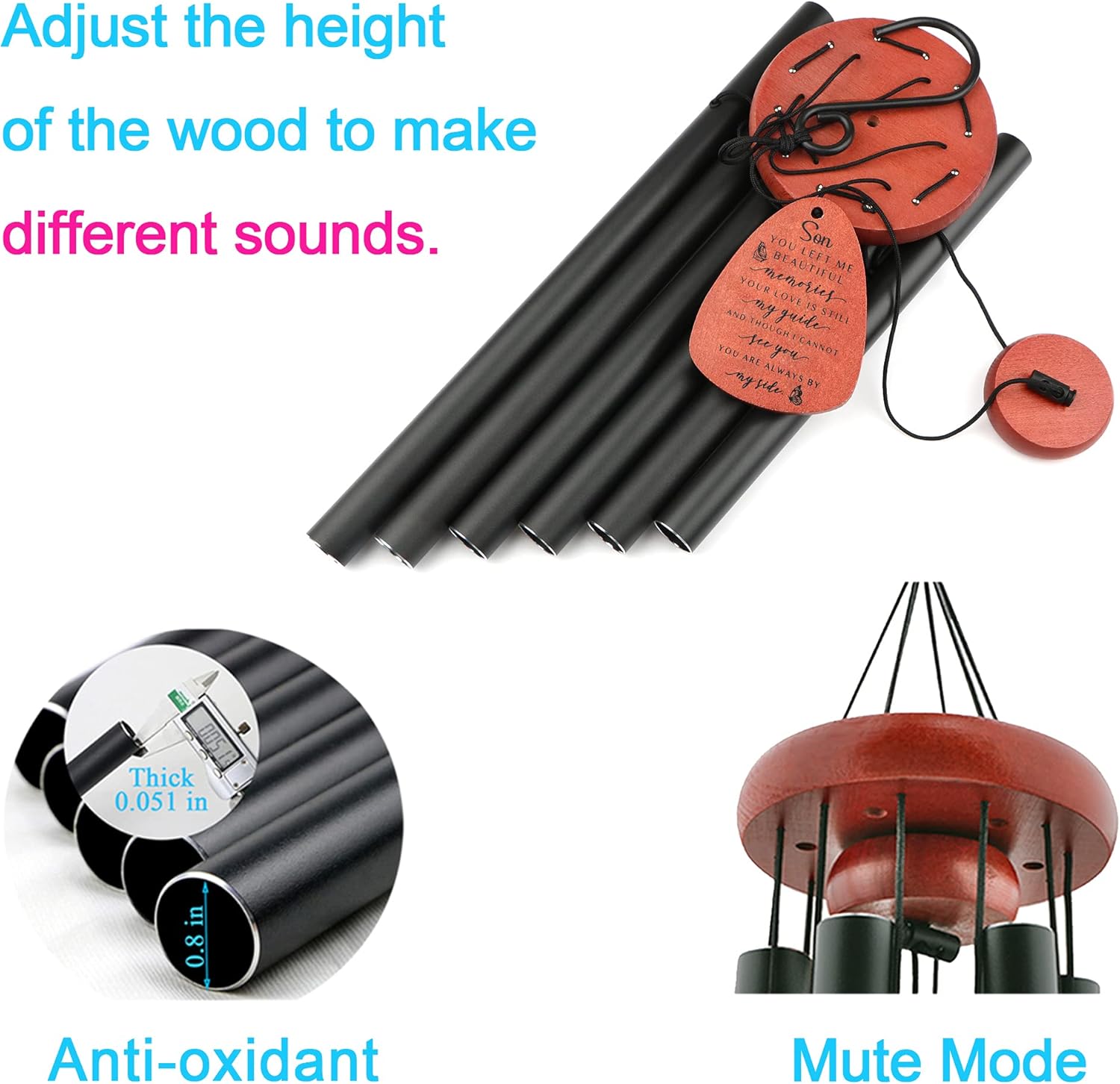 - Premium Quality Memorial Wind Chimes: Made with high-quality aluminum tubes and a corrosion-resistant black anodized finish, these memorial wind chimes produce clear, beautiful tones. The bell holder, striker, and wind catcher are made from durable beech wood, and the entire structure is supported by a strong, weather-resistant nylon cord for lasting outdoor use